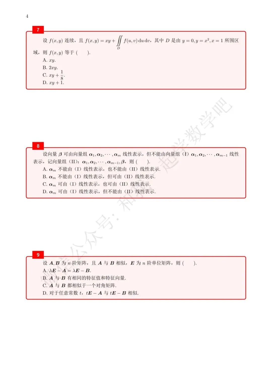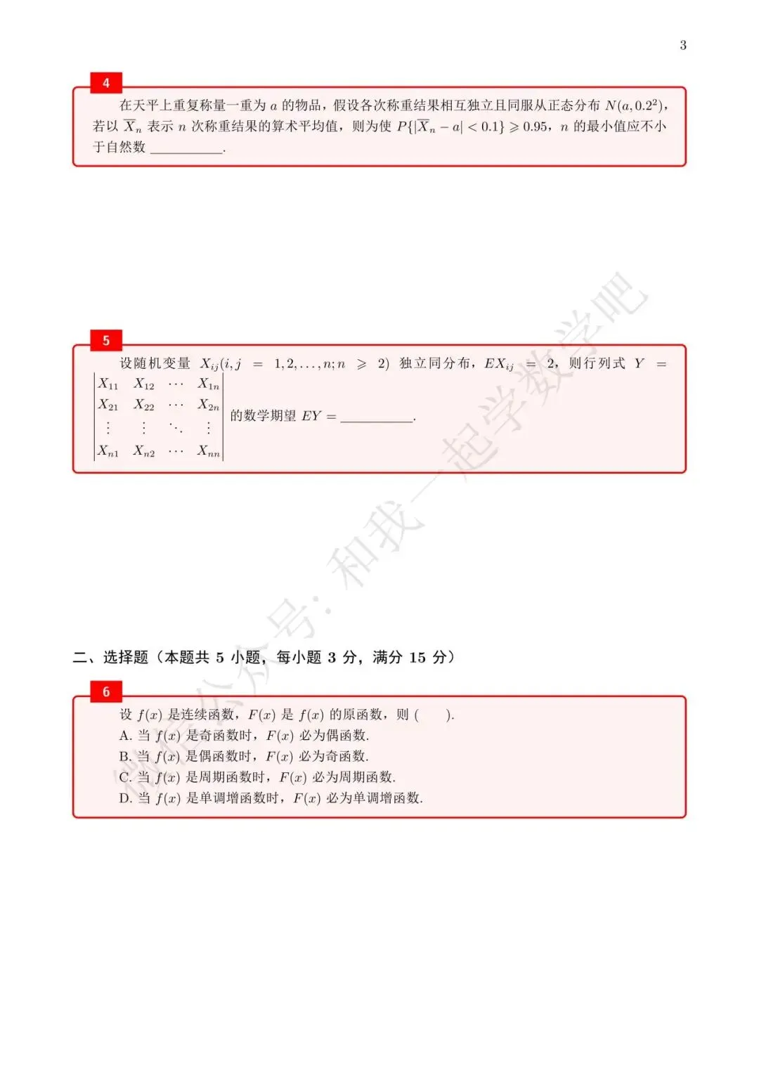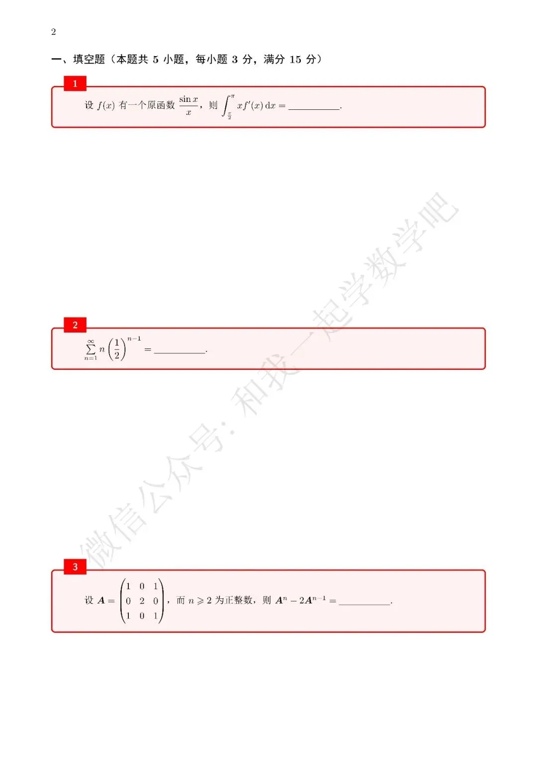为了方便各位小伙伴们刷题,我重新排版了99年数三的真题,在每道题下面都增加了空白,方便大家写答案,记录相关知识点。
