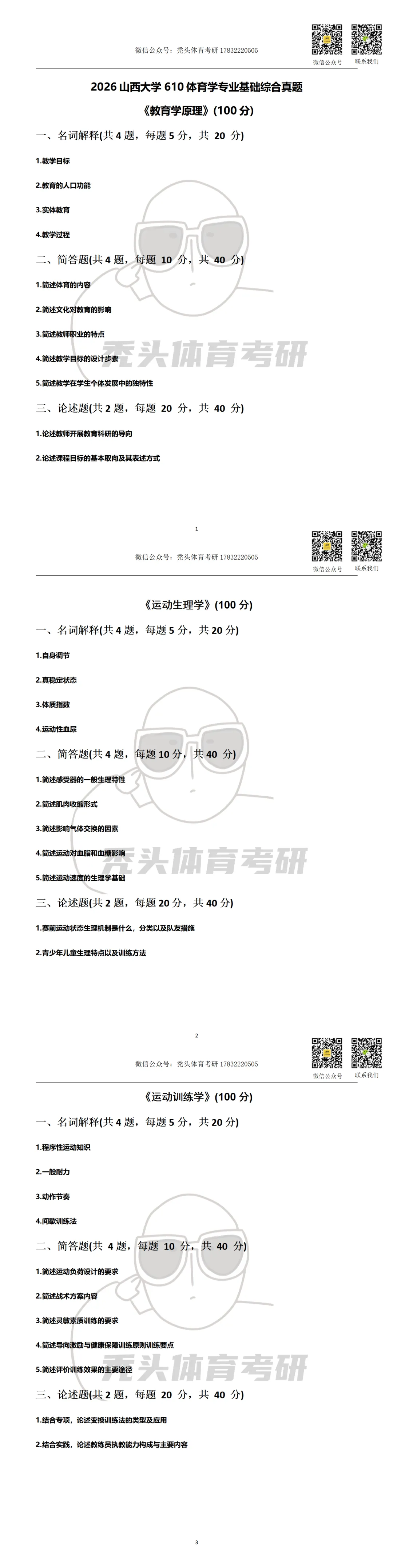 >26体育考研真题丨山西大学610体育学基础综合初试真题(2026)
