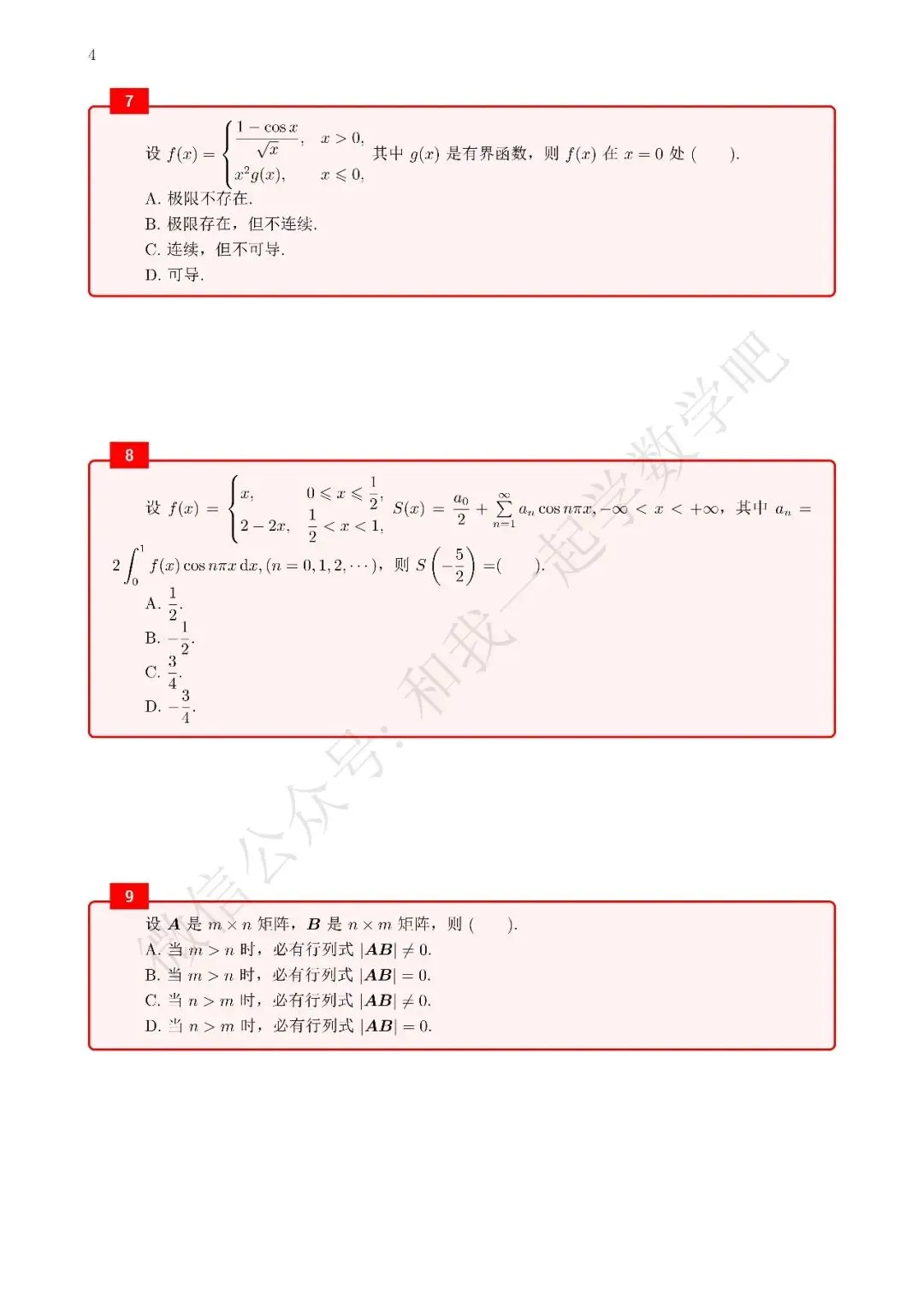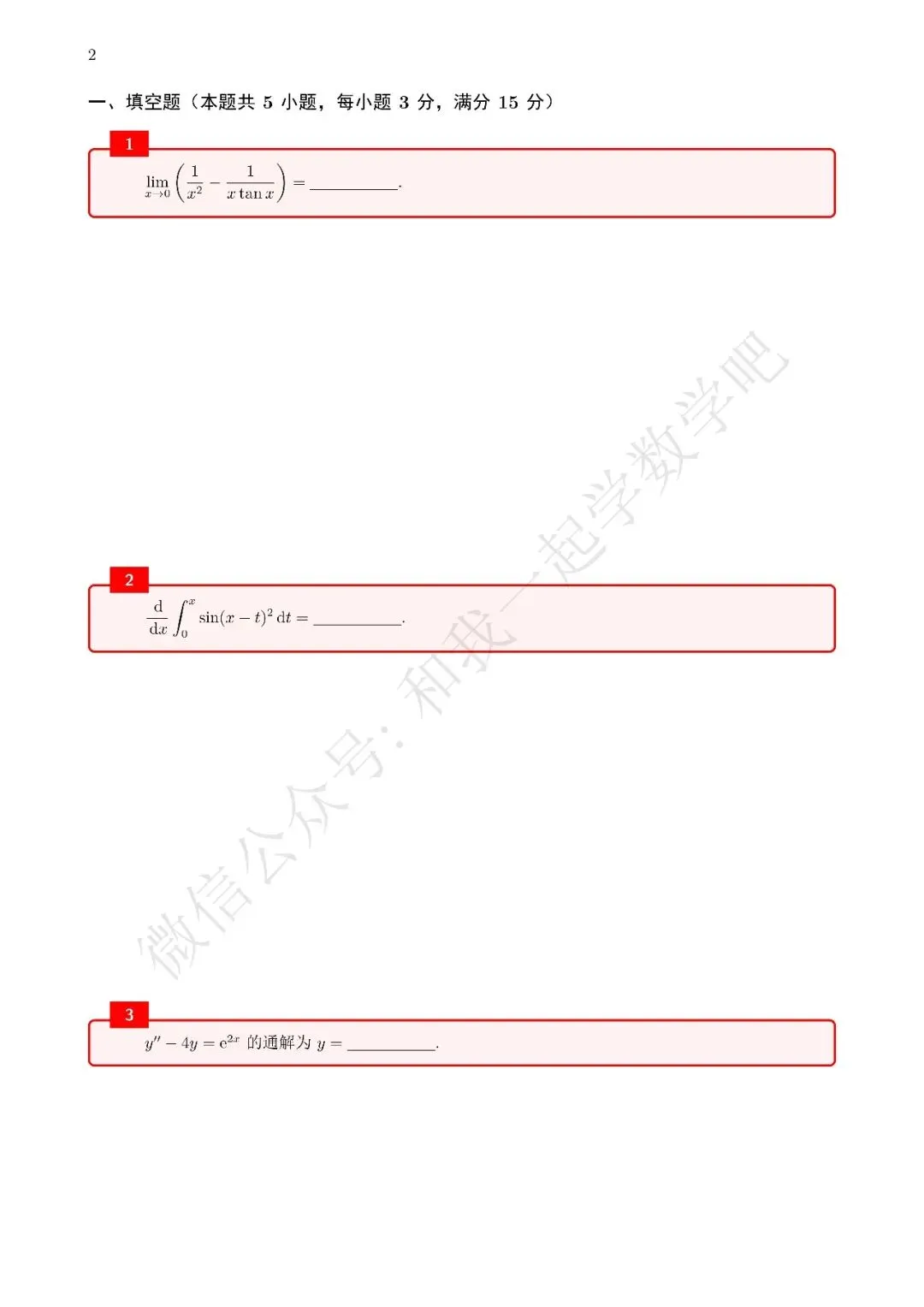为了方便各位小伙伴们刷题,我重新排版了99年数一的真题,在每道题下面都增加了空白,方便大家写答案,记录相关知识点。