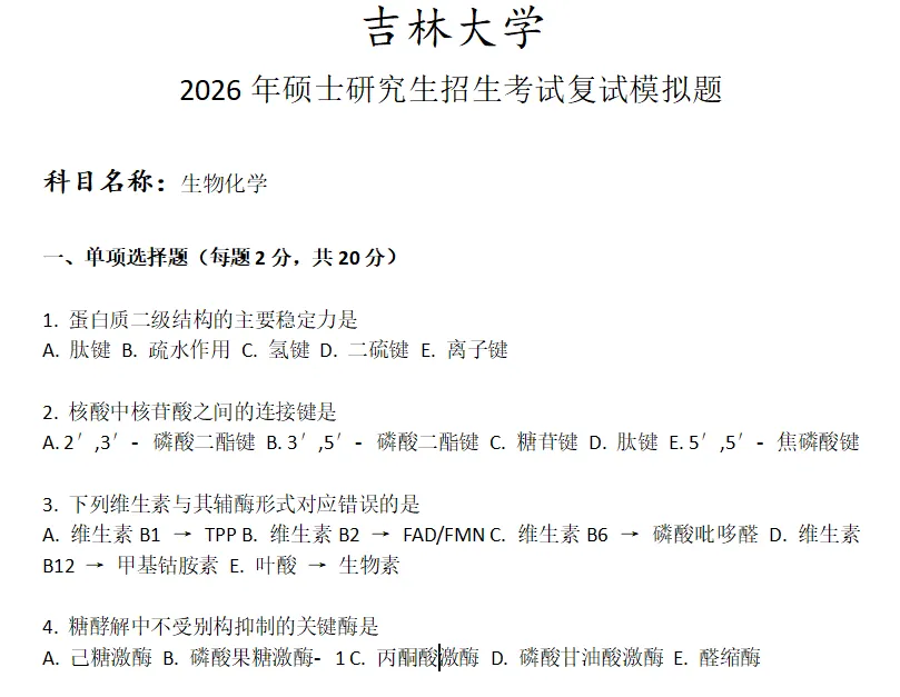 吉林大学生物化学考研复试真题模拟含答案