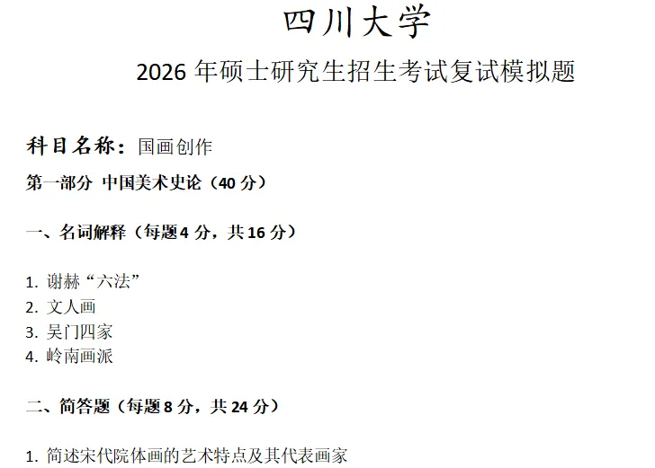 >四川大学国画创作考研复试真题模拟