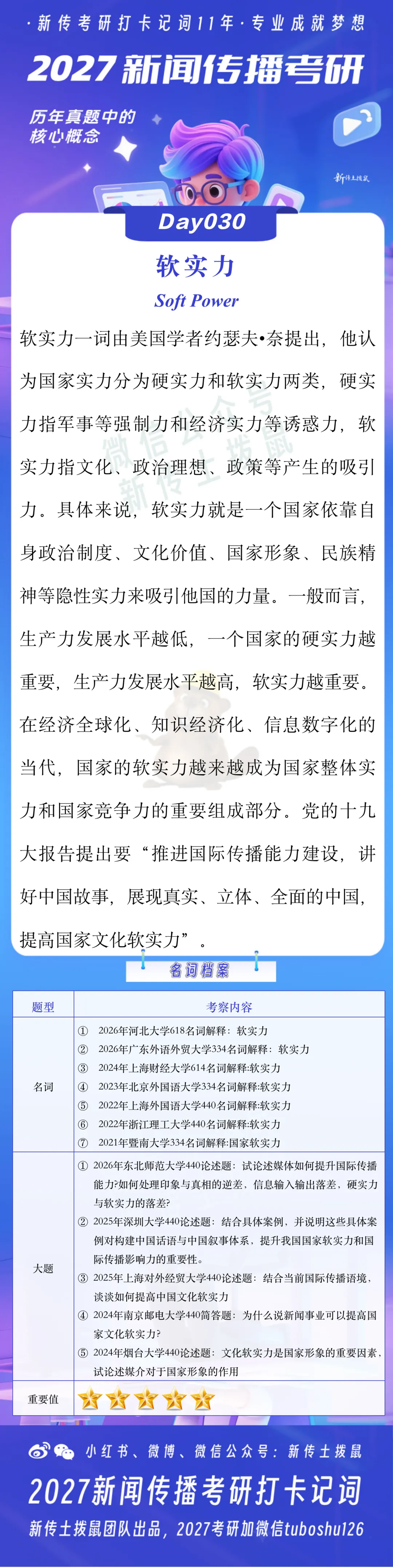 >软实力 | 2027新闻传播考研真题打卡记词Day030
