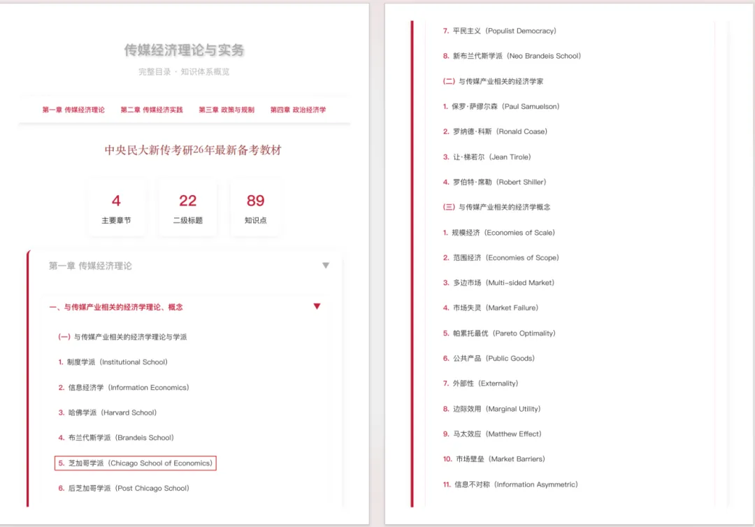 制度学派、芝加哥学派、SCP 范式、规制俘获理论这些易混的经济学理论,还有完全竞争、寡头垄断等传媒市场类型,书里都做了清晰区分,过一遍就能理清差异,选择题、辨析题再也不用纠结,避开出题陷阱。
