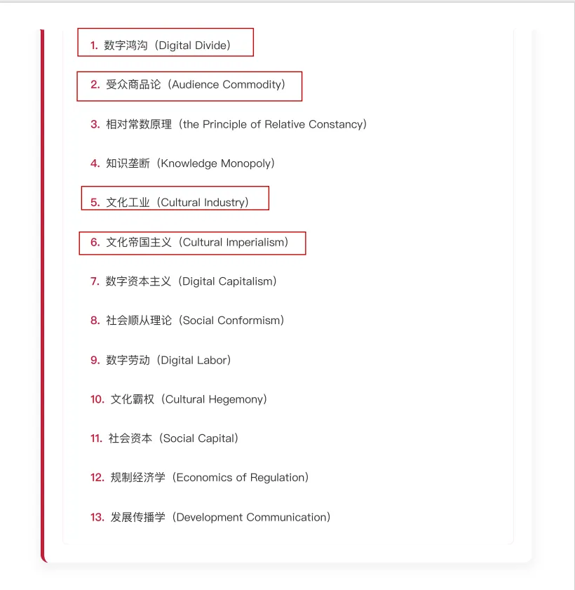 传媒政治经济学部分整理了彼得・戈尔丁、达拉斯・斯迈思等代表人物,还有《传播政治经济学》等经典著作,以及数字鸿沟、文化工业、数字劳动这些核心概念,复试时适当提及,能让老师看到你的知识储备不止于基础,专业度直接拉满。