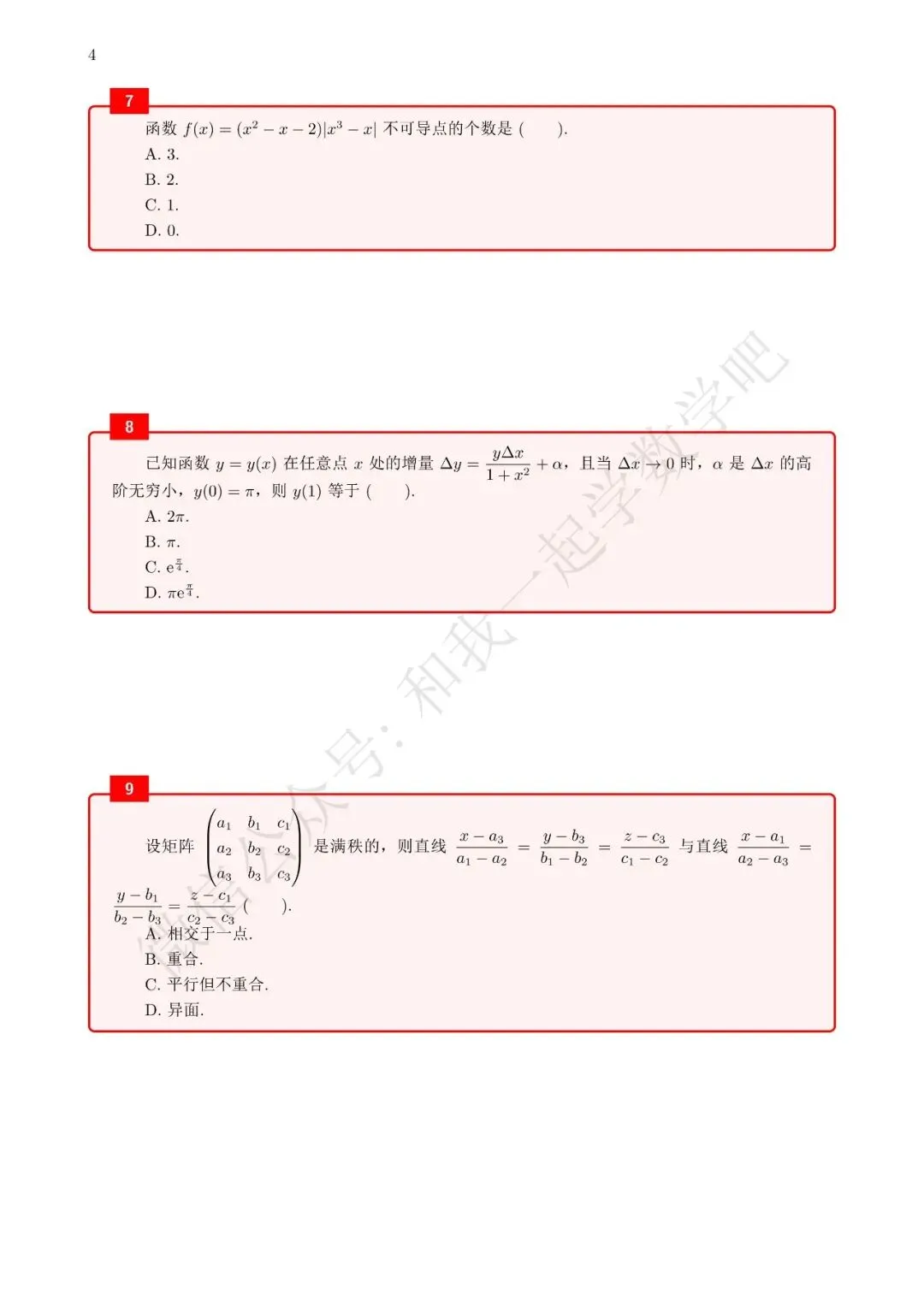 为了方便各位小伙伴们刷题,我重新排版了98年数一的真题,在每道题下面都增加了空白,方便大家写答案,记录相关知识点。