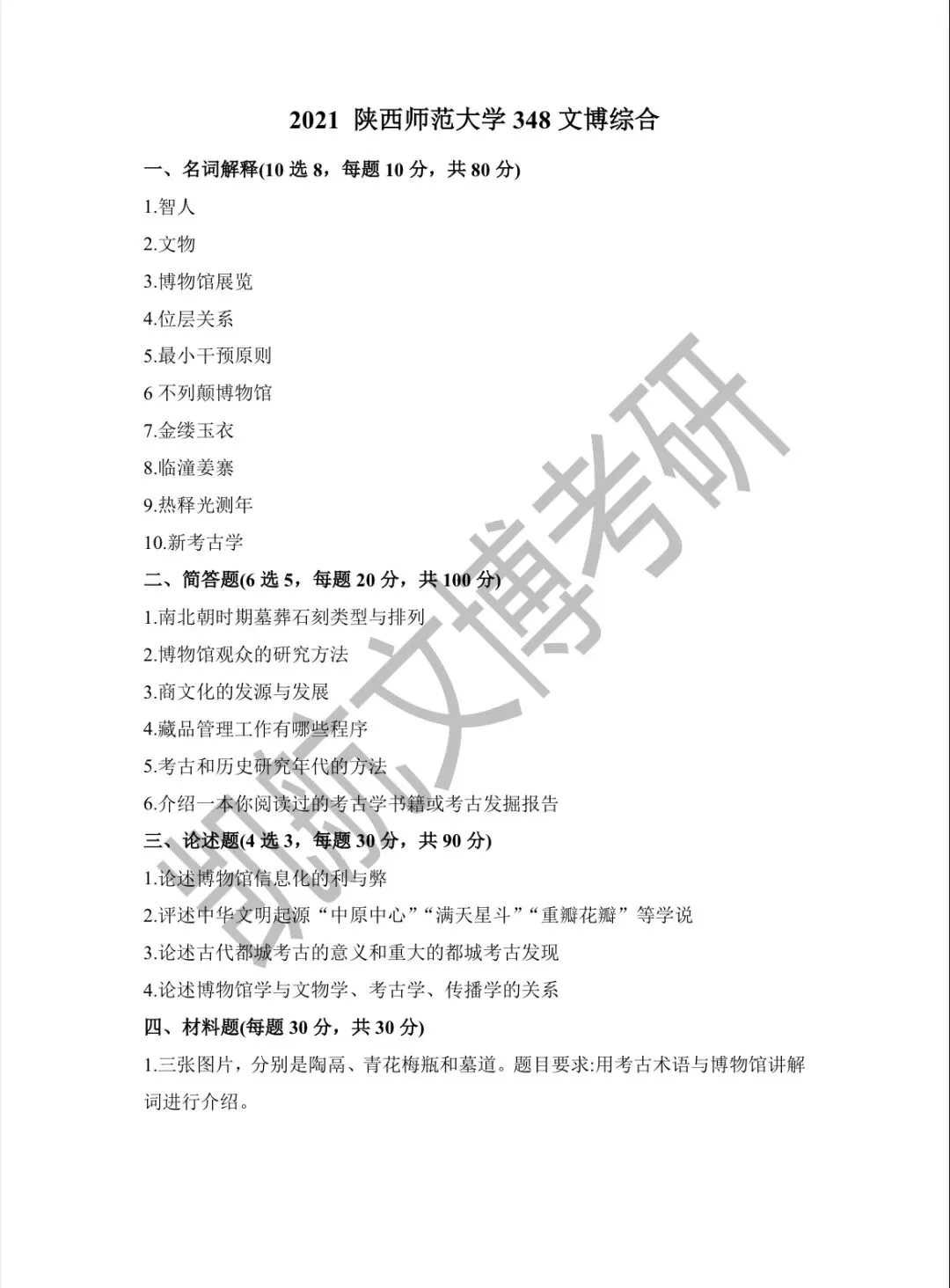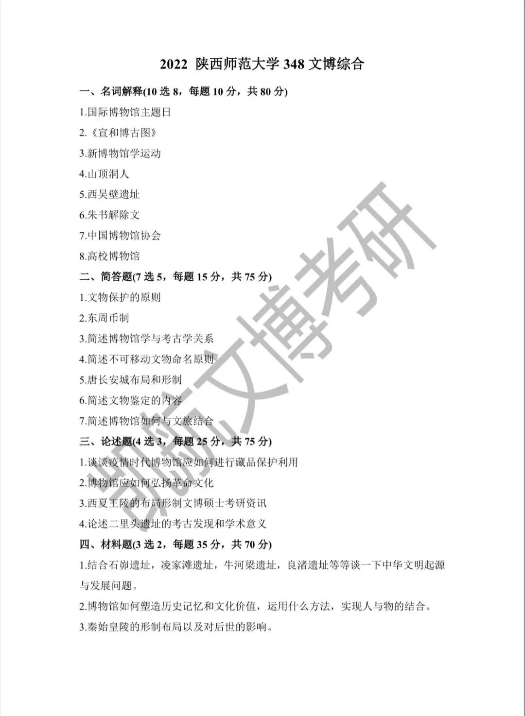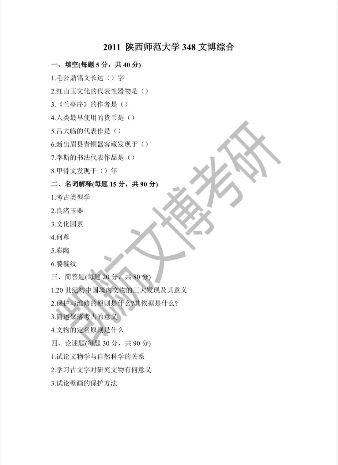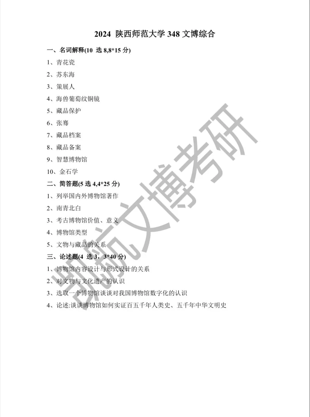 陕西师范大学2011-2026文博考研初试真题汇总