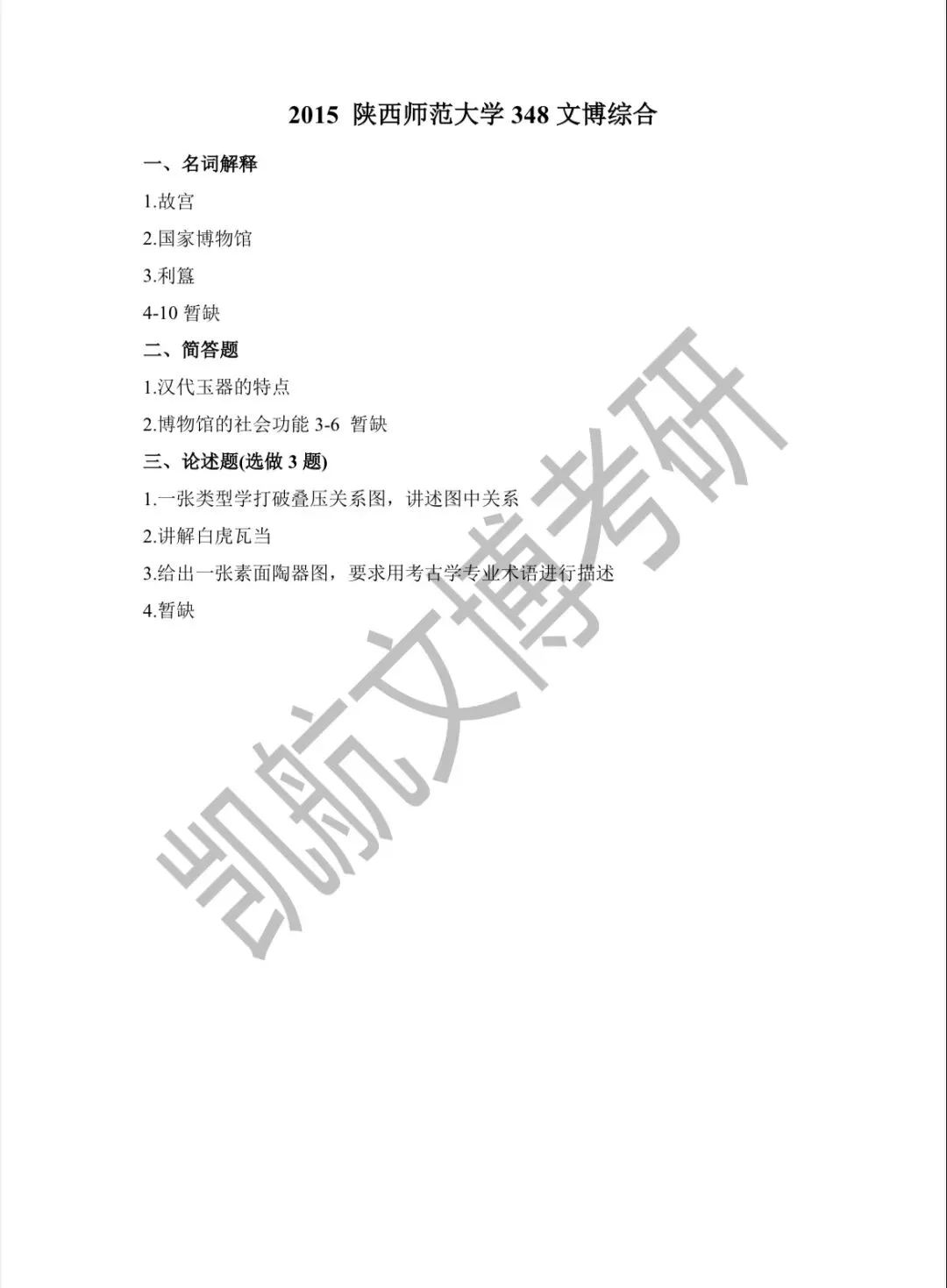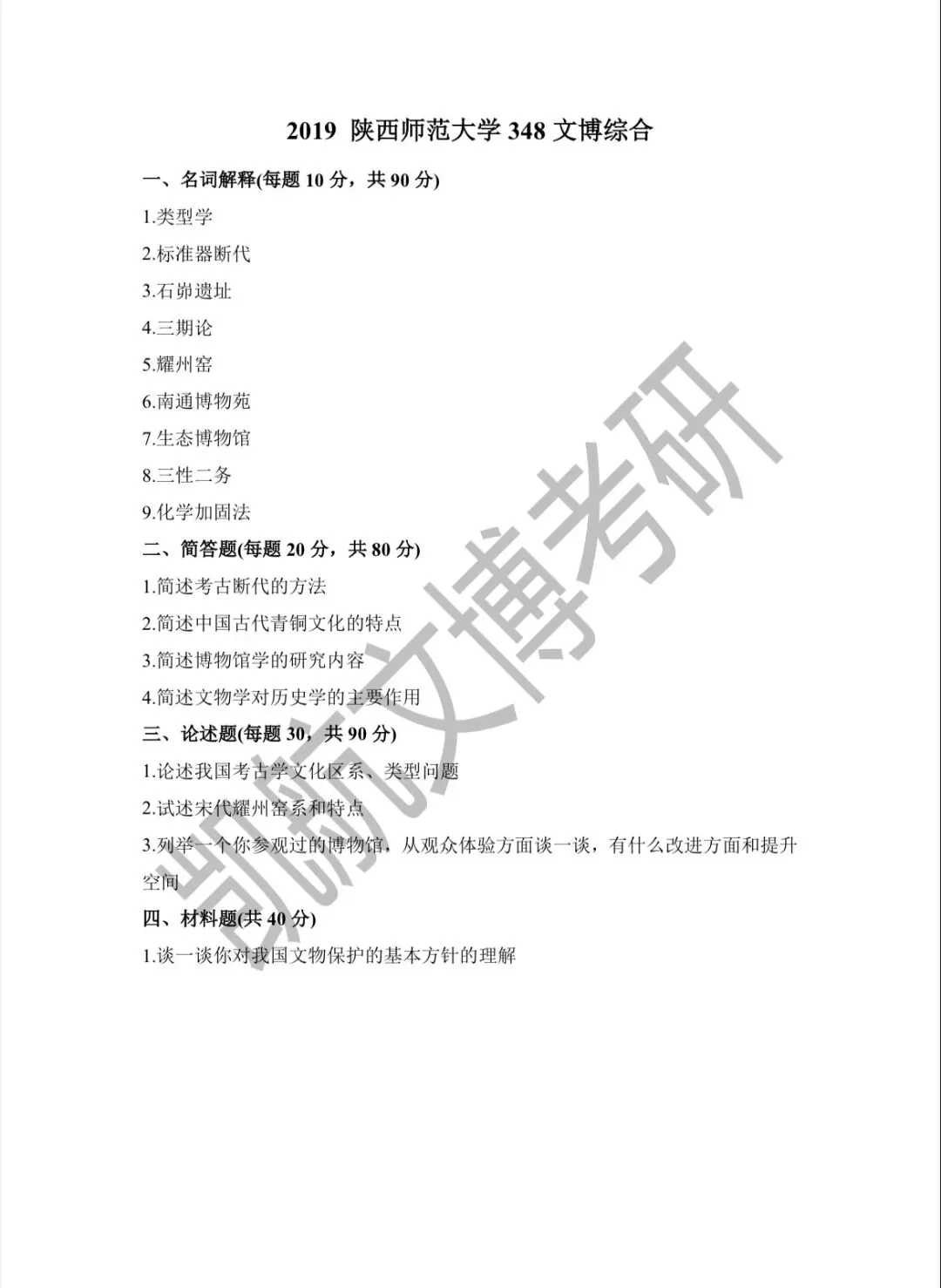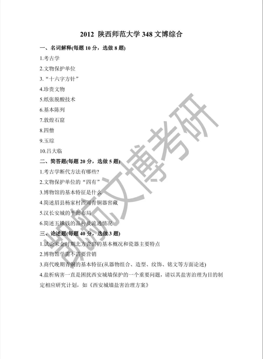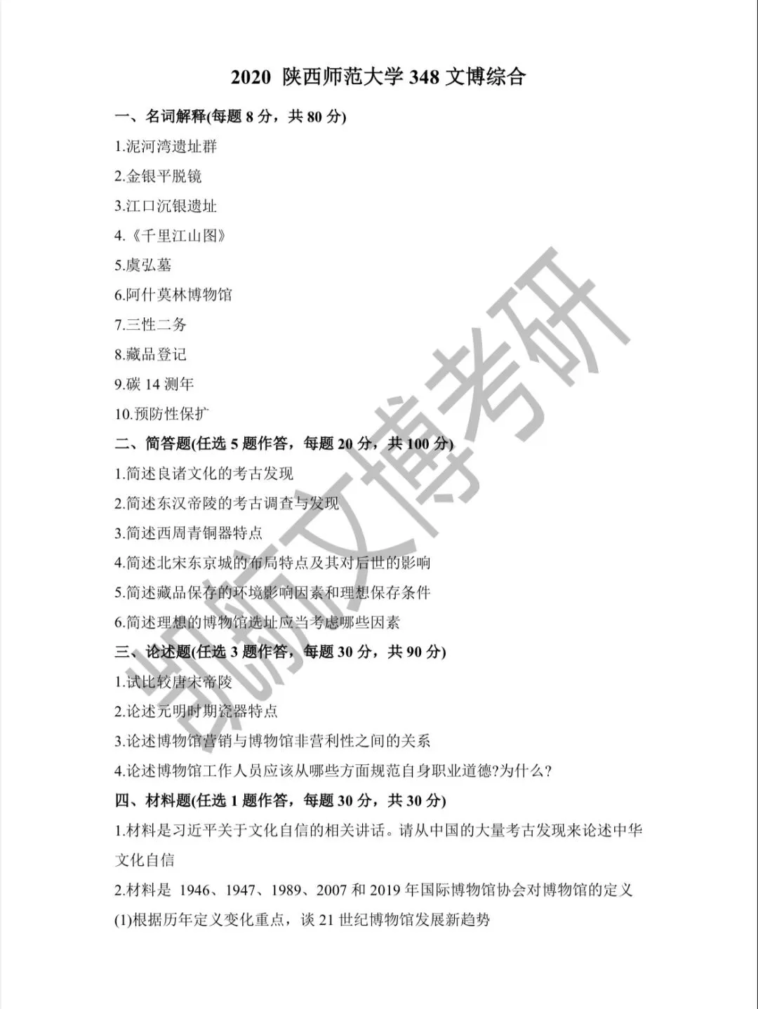 陕西师范大学2011-2026文博考研初试真题汇总