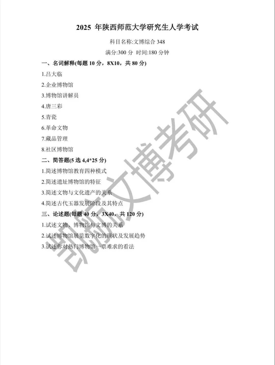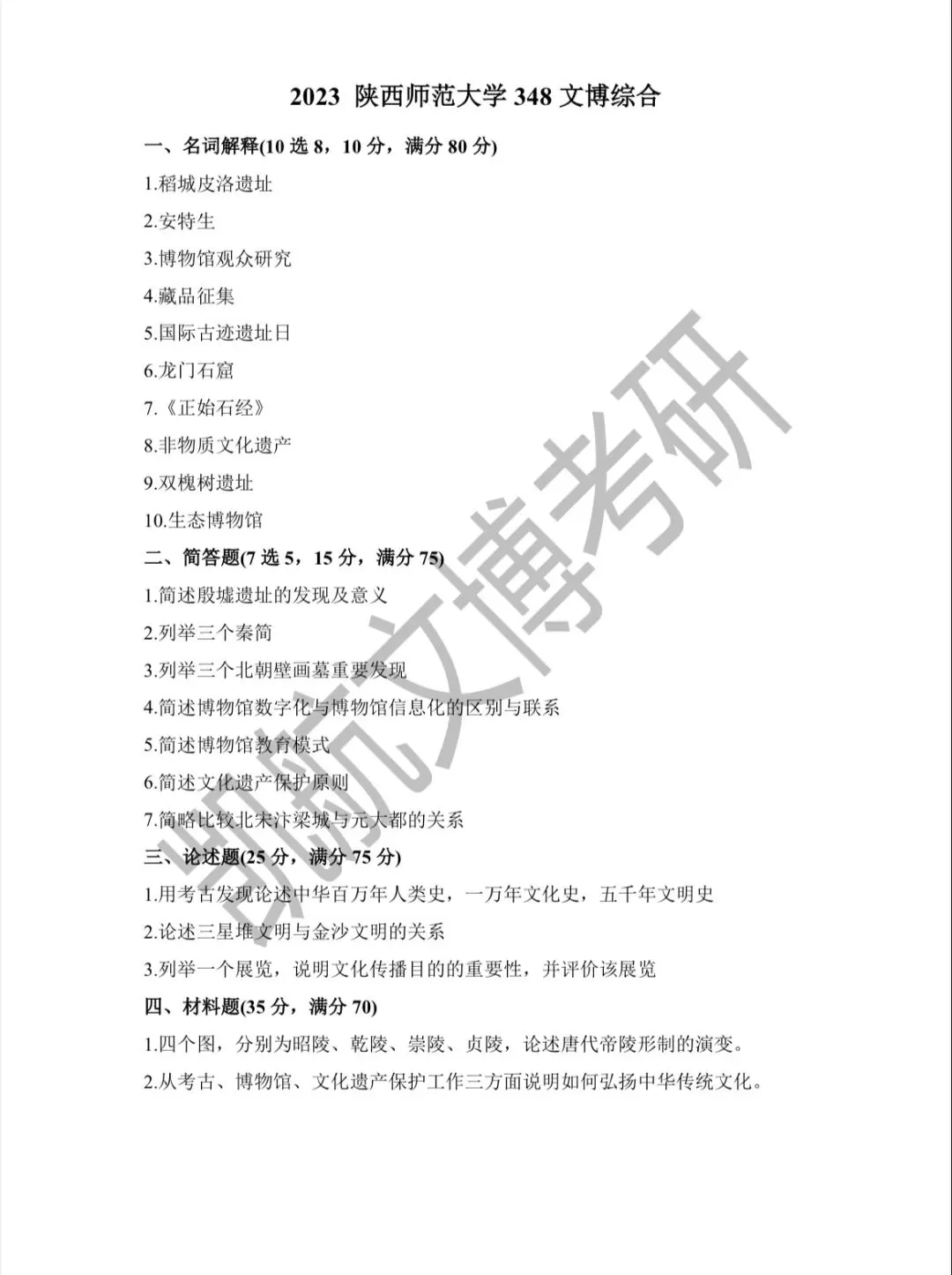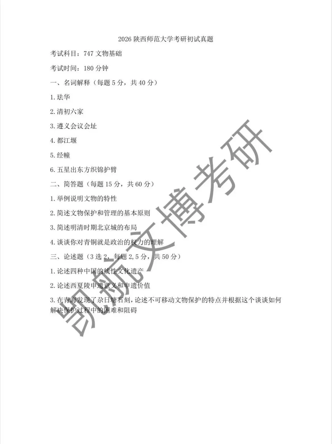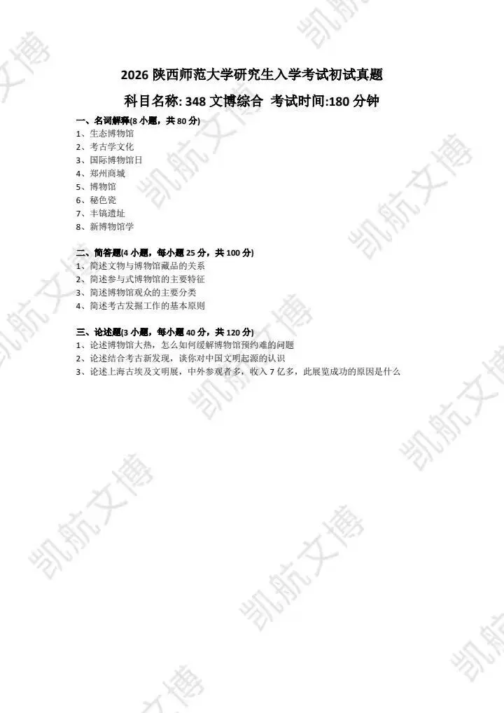 >陕西师范大学2011-2026文博考研初试真题汇总