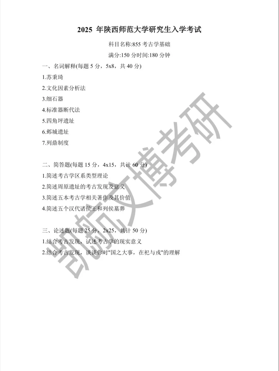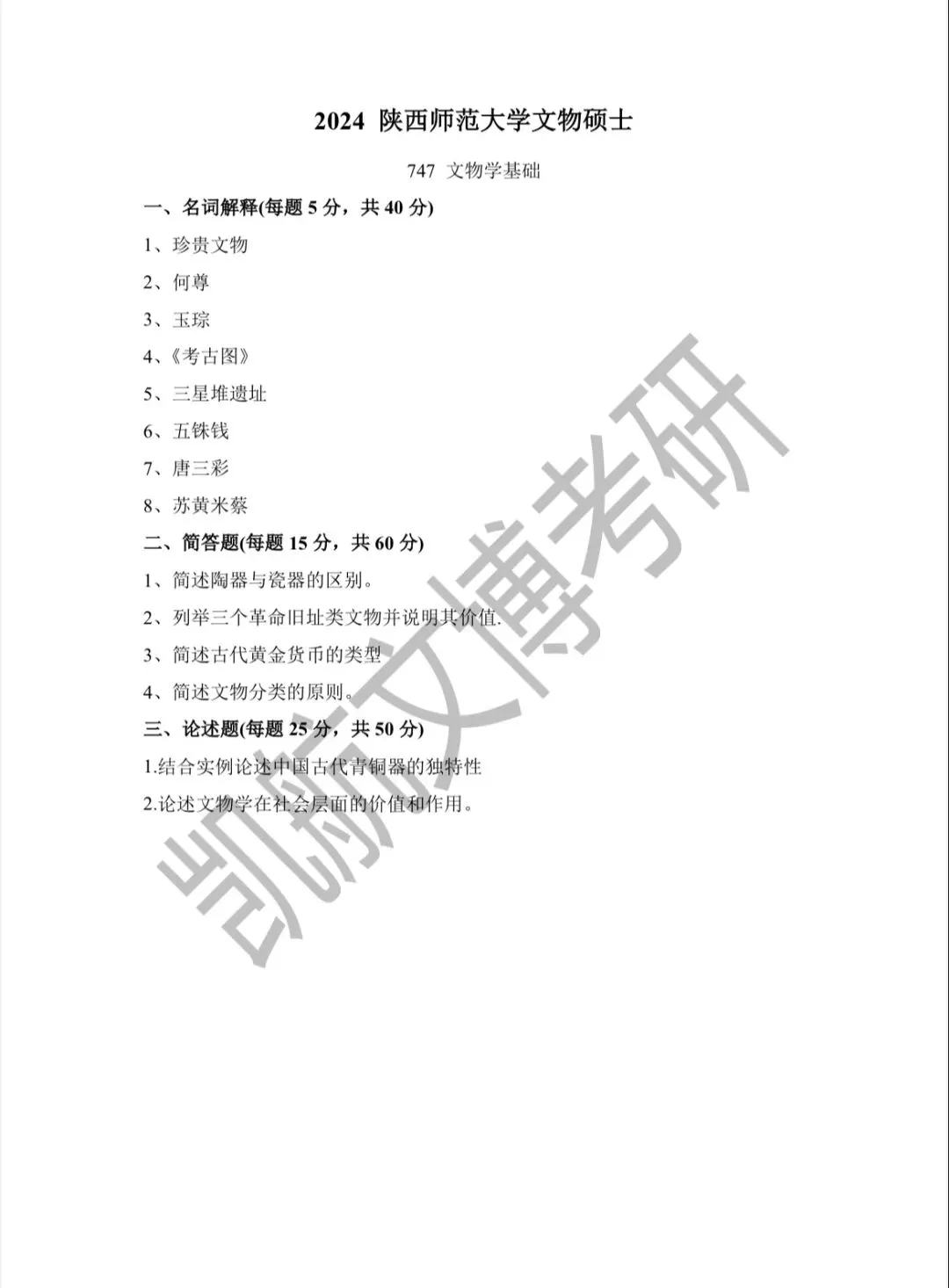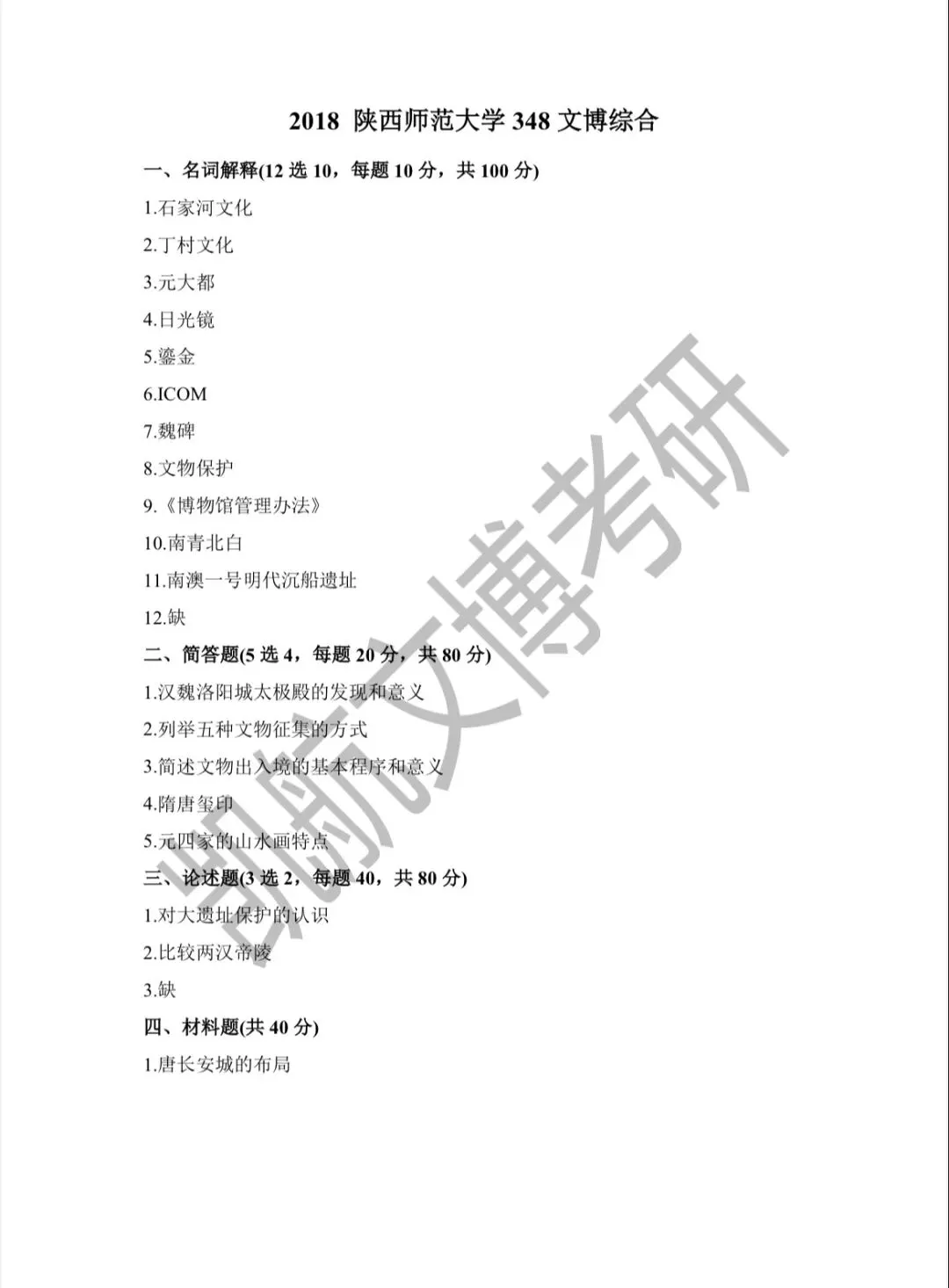 >陕西师范大学2011-2026文博考研初试真题汇总