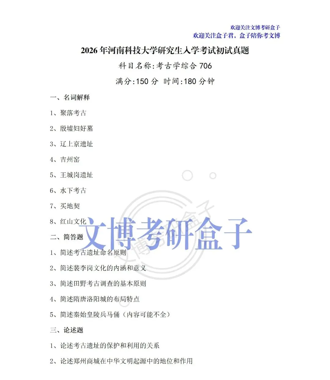 文博考研 | 2026年河南科技大学『文物专业真题合集』