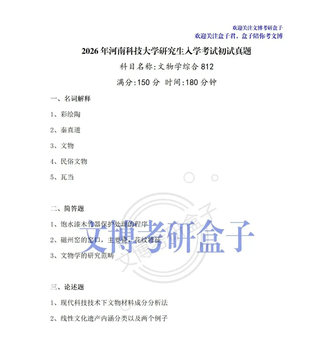 >文博考研 | 2026年河南科技大学『文物专业真题合集』