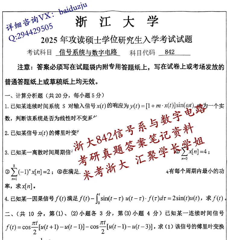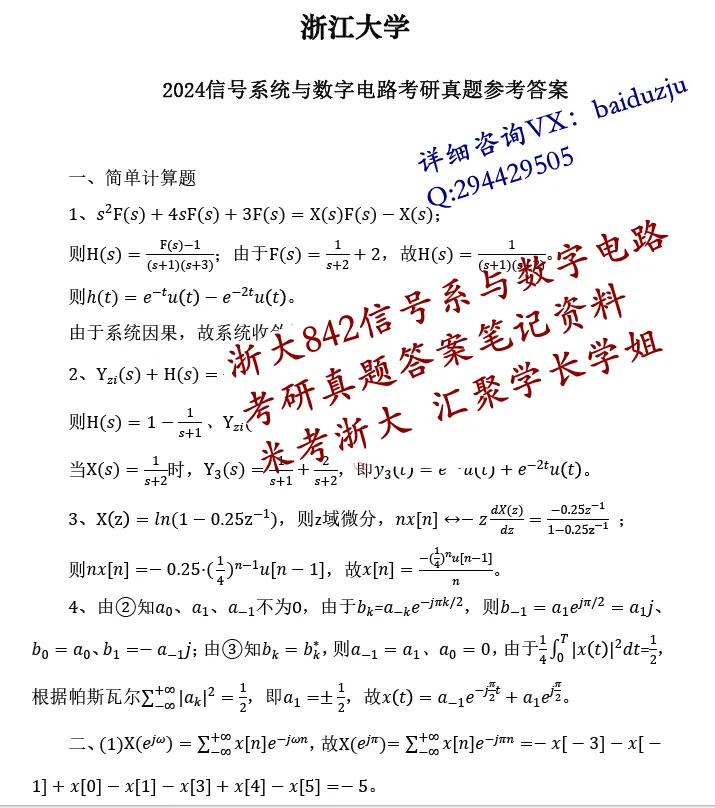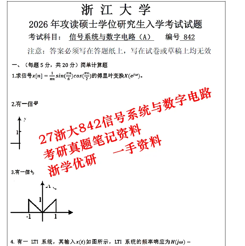 27浙大842信号系统与数字电路考研真题答案笔记资料