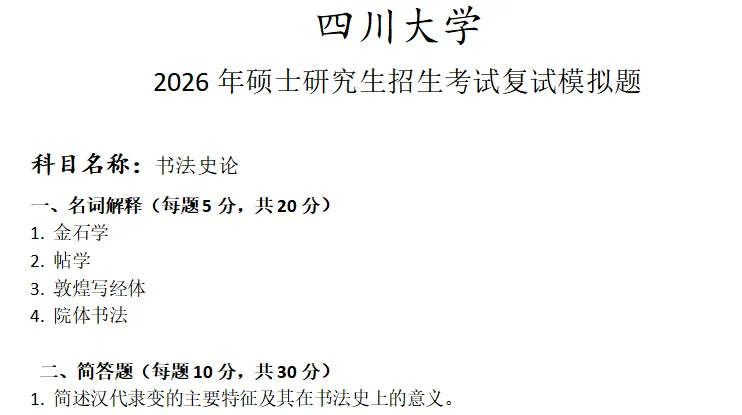>四川大学书法史论考研复试真题模拟