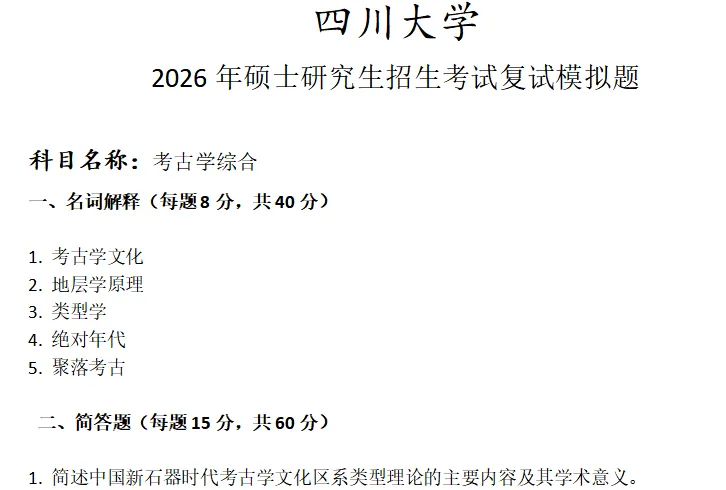 >四川大学考古学综合考研复试真题模拟
