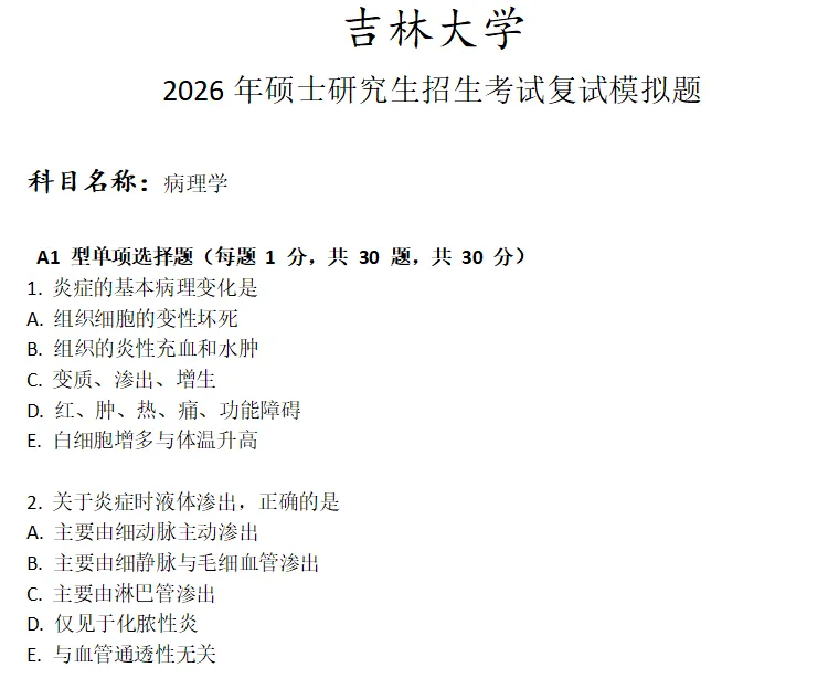 吉林大学病理学考研复试真题模拟含答案