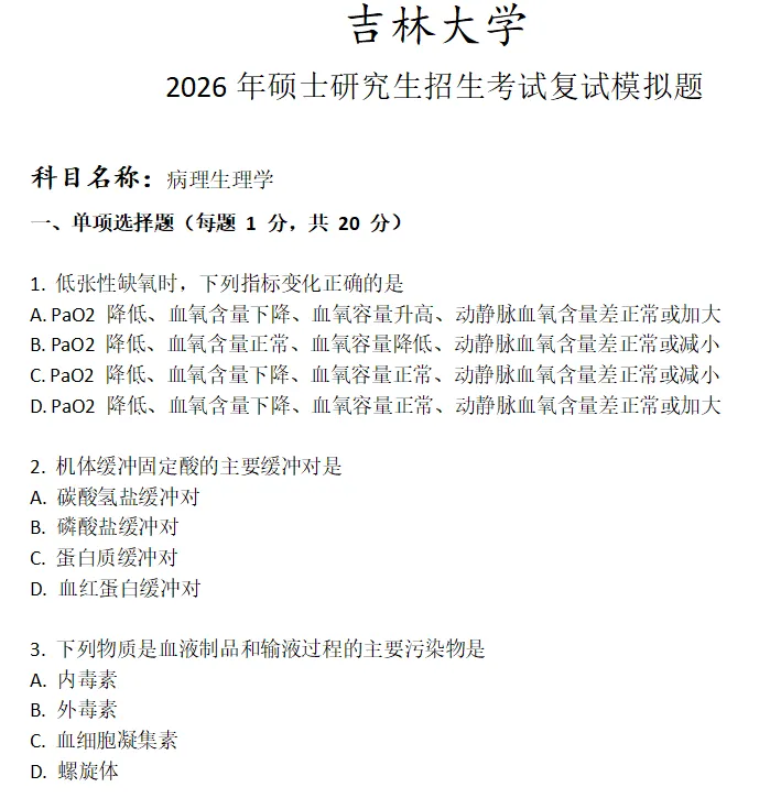 吉林大学病理生理学考研复试真题模拟含答案