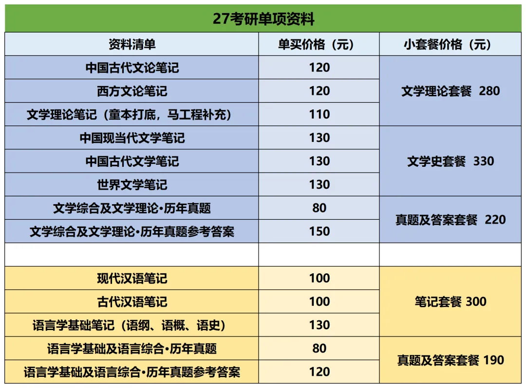 文学类:中国古代文学笔记主要就相关考点做了新增或拓补,进一步提升了考点覆盖率,对部分名词解释与简答论述题的论点、例证等也做了更新及细节优化;比较文学与世界文学笔记几乎是推倒重做的,更新比率在70%左右,主要体现在对郑版《外国文学史》考点内容的进一步补充细化,26考研各院校新增考点的专题整理,以及27考研参考书目中新增的张德明版《世界文学史》笔记的编写植入等;中国现当代文学笔记对27考研书目新增/版本置换后的相关考点进行了补充整理,对当代文学部分进行了大幅扩充。文学理论科目的三本笔记改动比率在20%左右,主要是对古代文论与西方文论部分的拓补,相较其原有体量来说整体改动不算大。767+867历年真题主要新增了最新一年的题目并对之前年份重新做了修订;767+867历年真题参考答案则重新进行了编制,约60%的内容都是重新设计编写的,也尽可能与我们的笔记内容做了贯通,基本可以达成到手后直接背诵的效果。