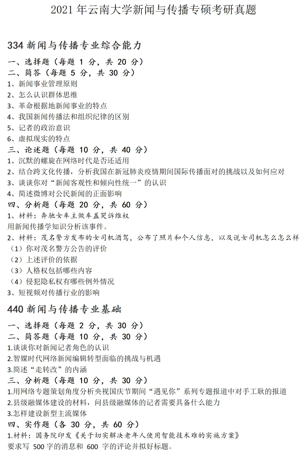 >云南大学新闻与传播考研真题2021