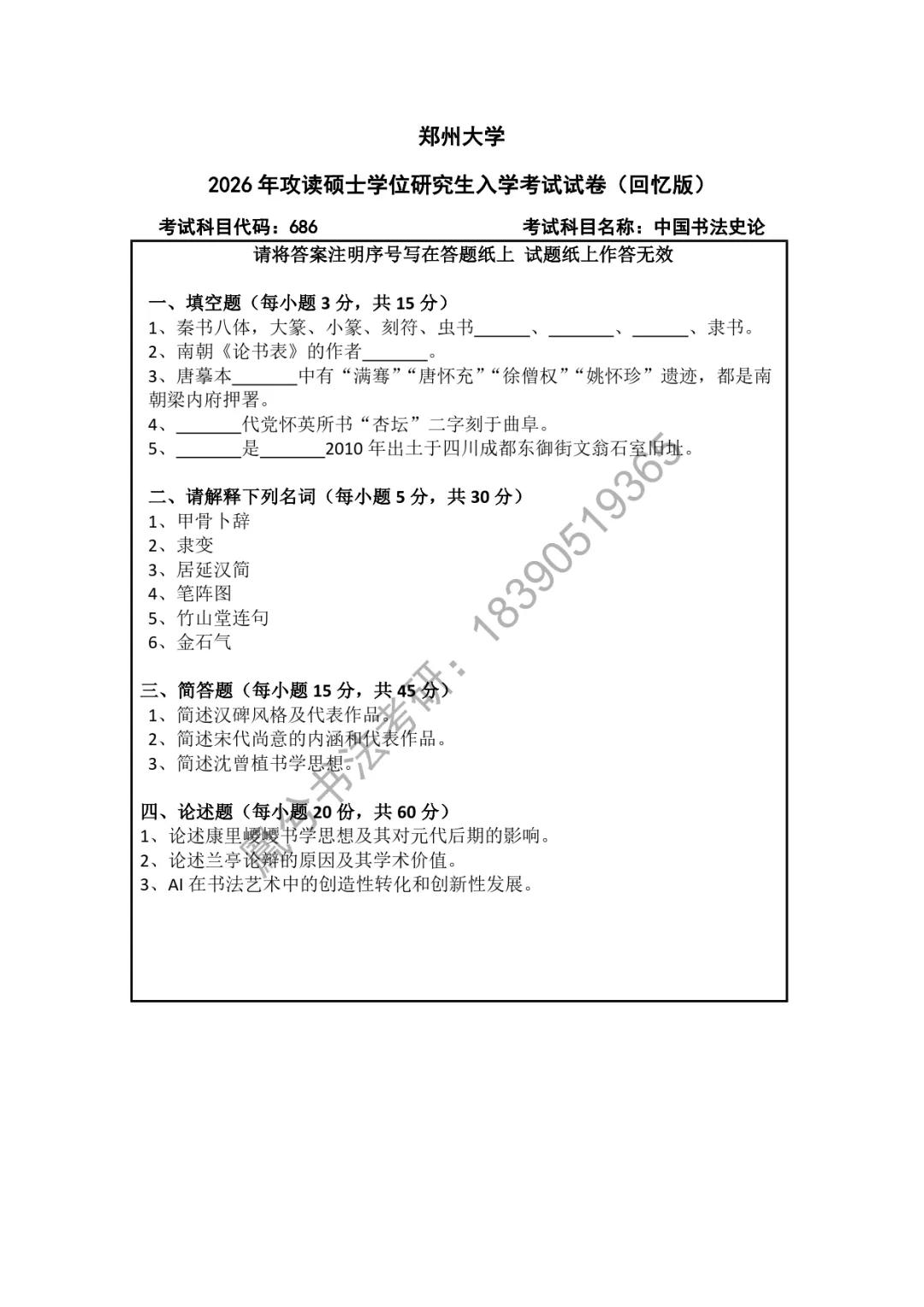 书法考研真题汇总