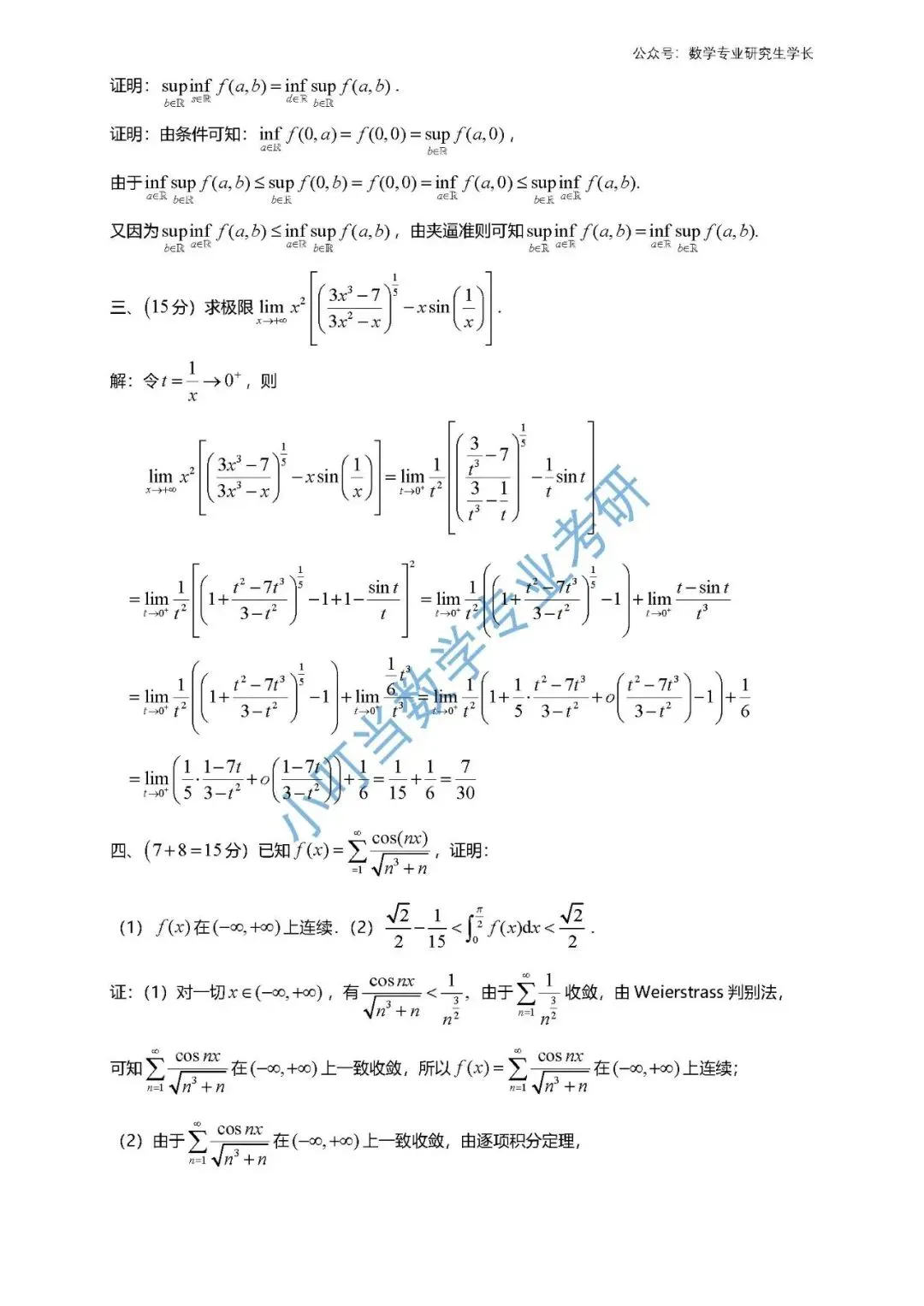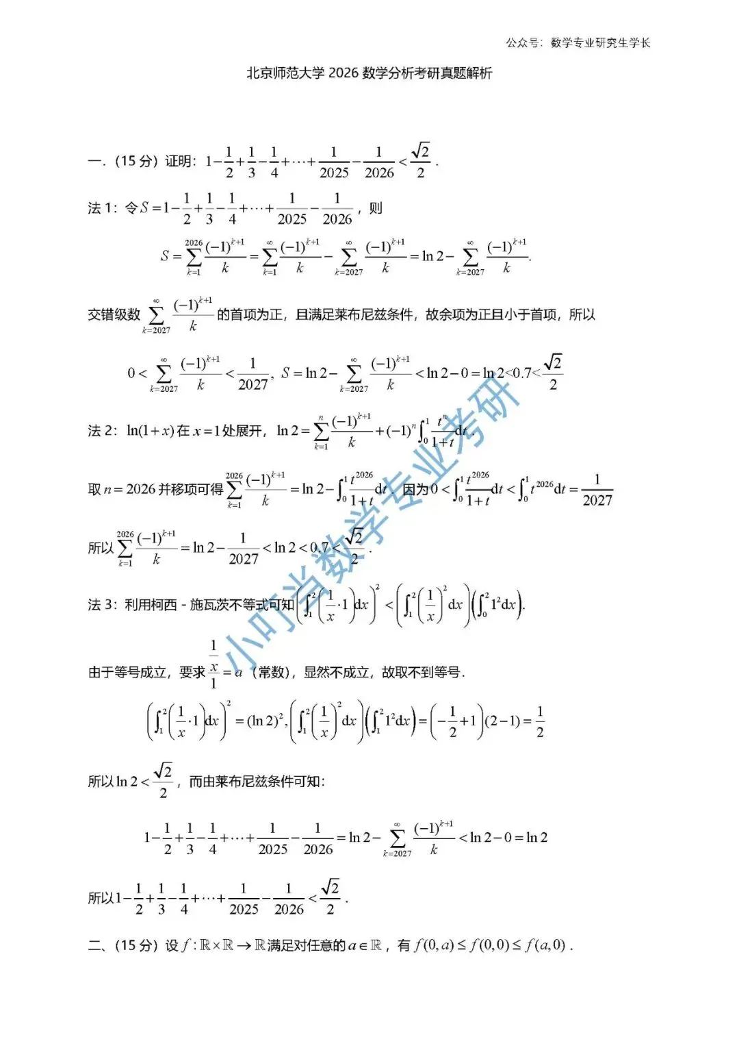 >北京师范大学2026数学分析考研真题解析