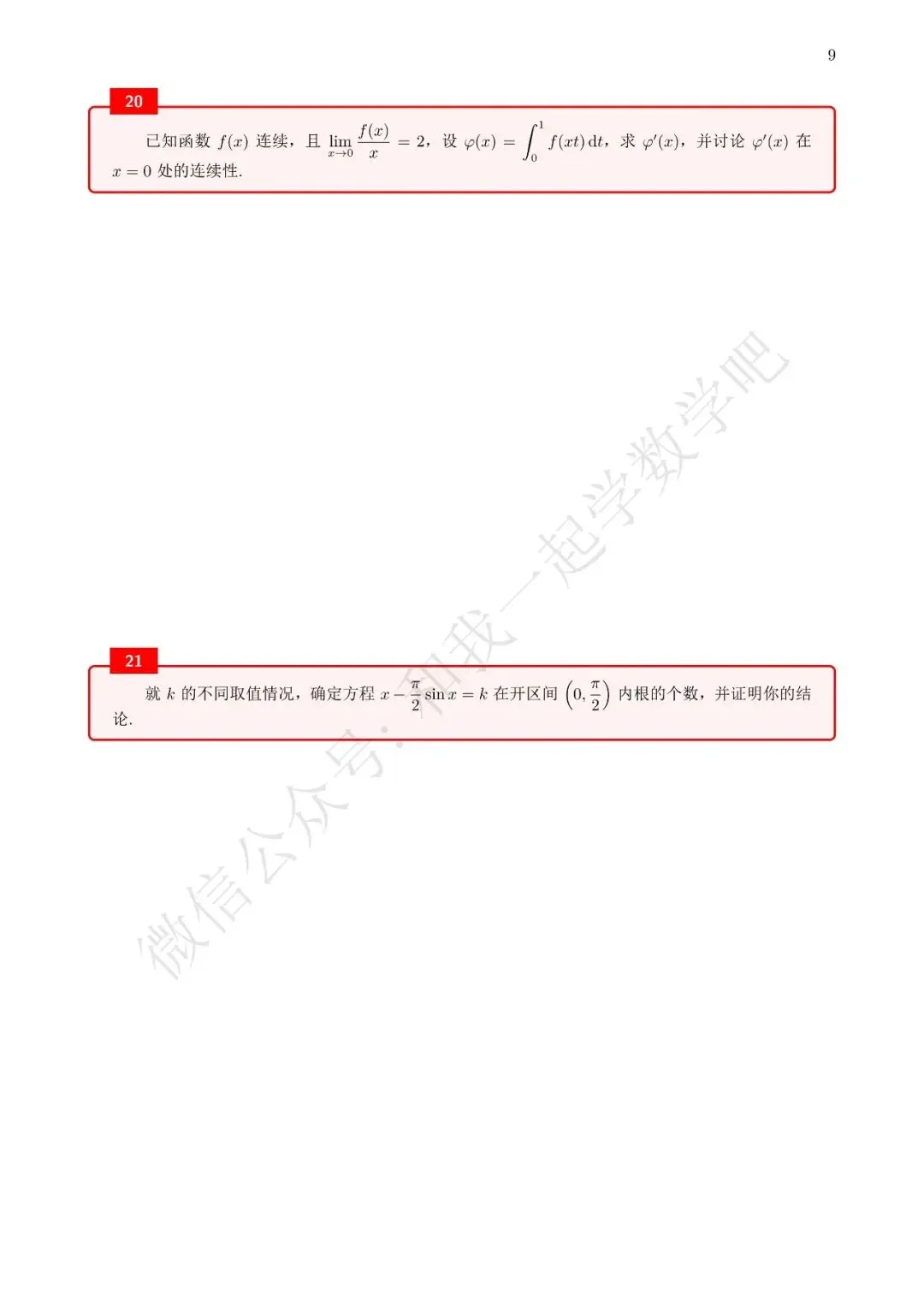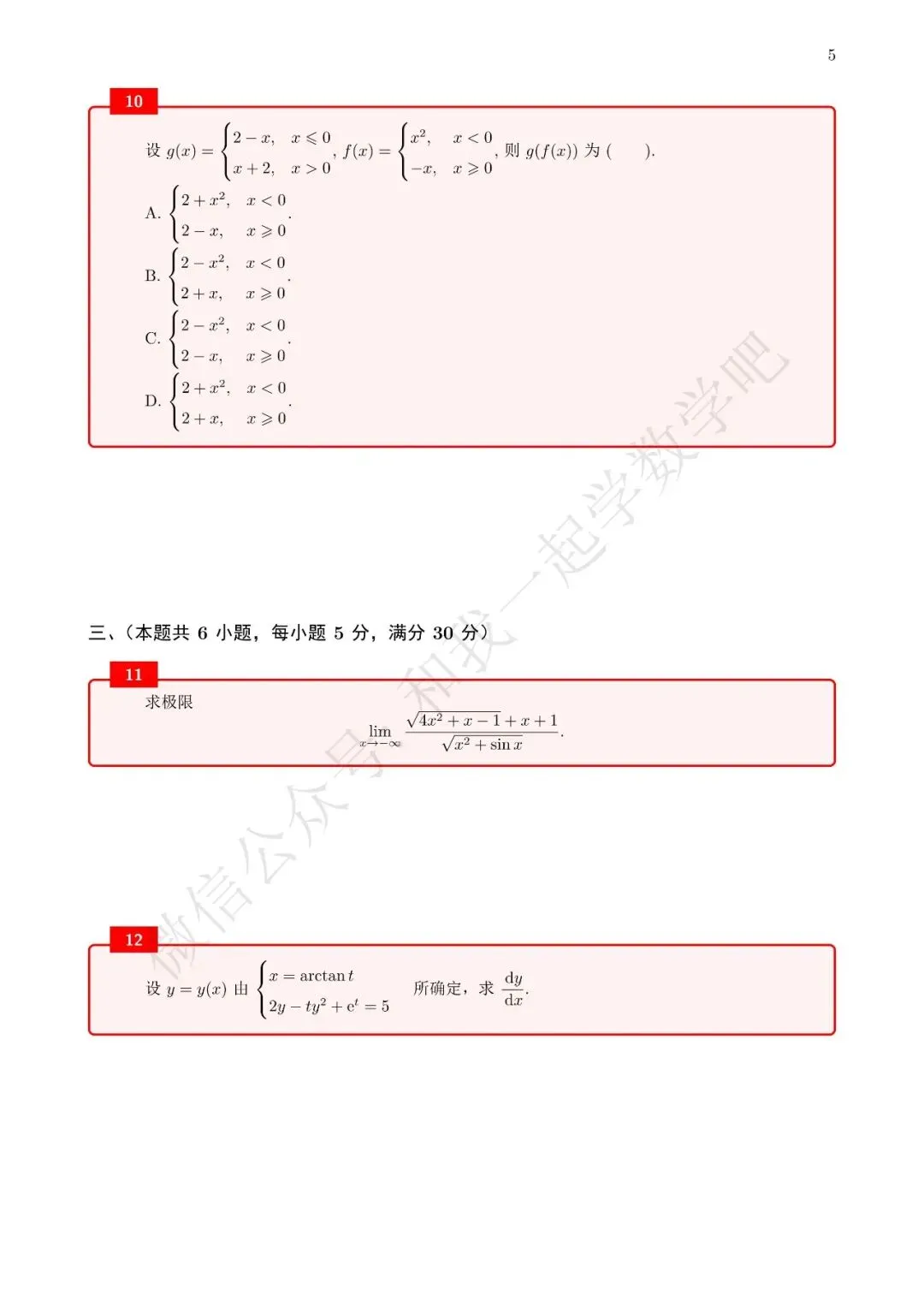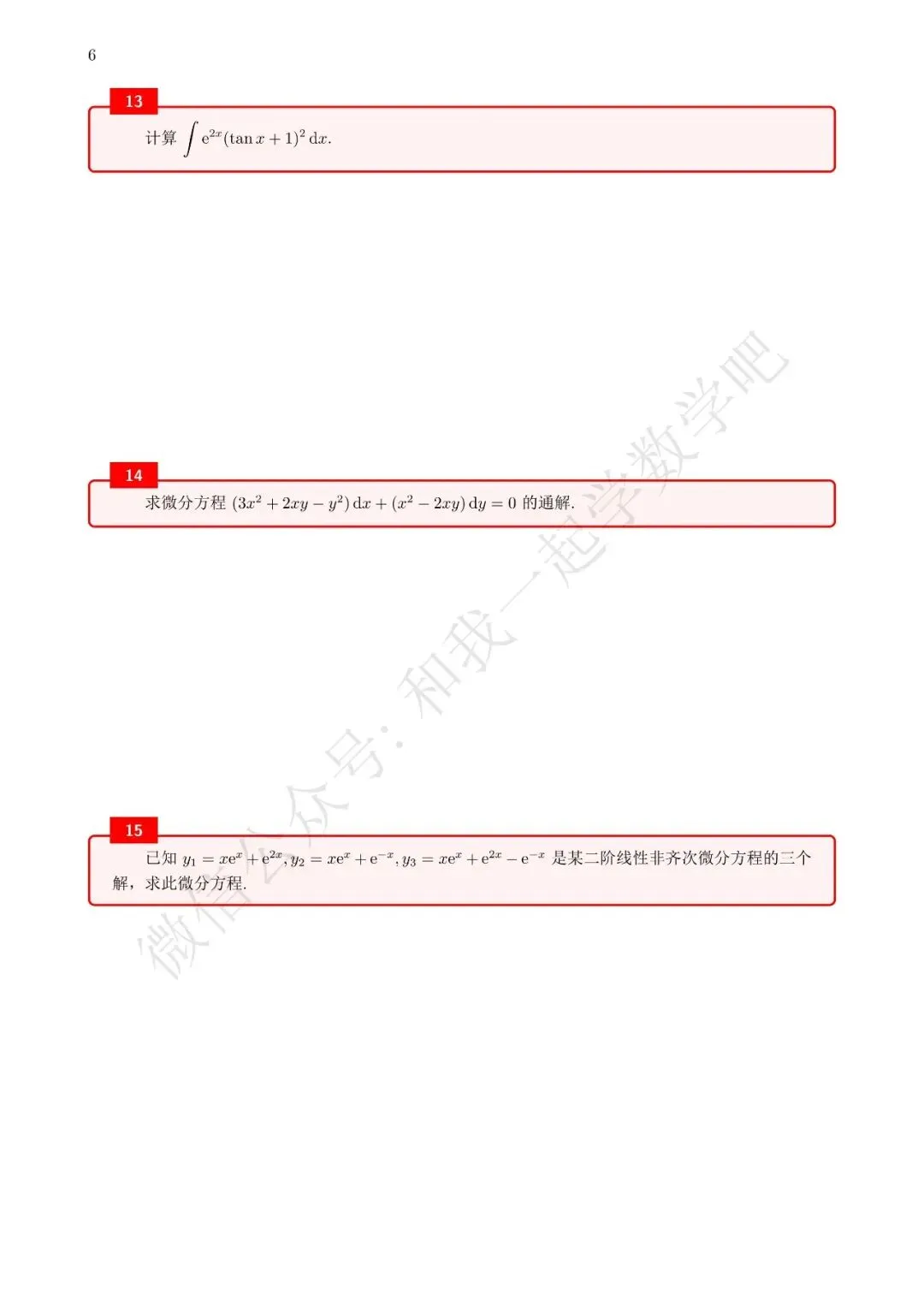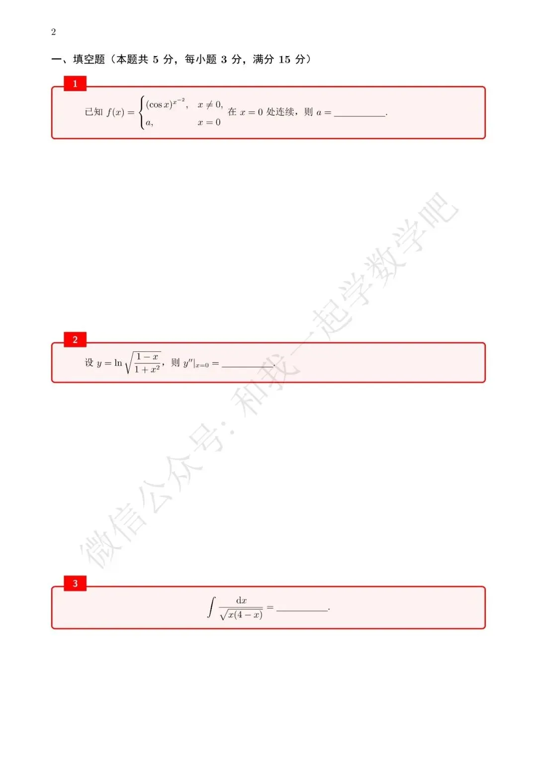 为了方便各位小伙伴们刷题,我重新排版了97年数二的真题,在每道题下面都增加了空白,方便大家写答案,记录相关知识点。