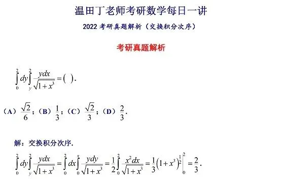 2022考研真题解析(交换积分次序)