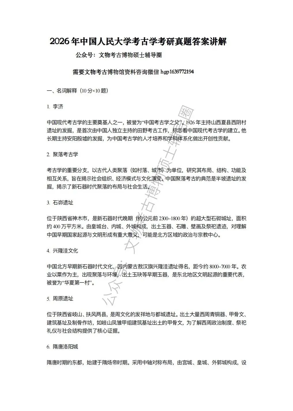 >第45集2026年中国人民大学考古学考研初试真题讲解视频