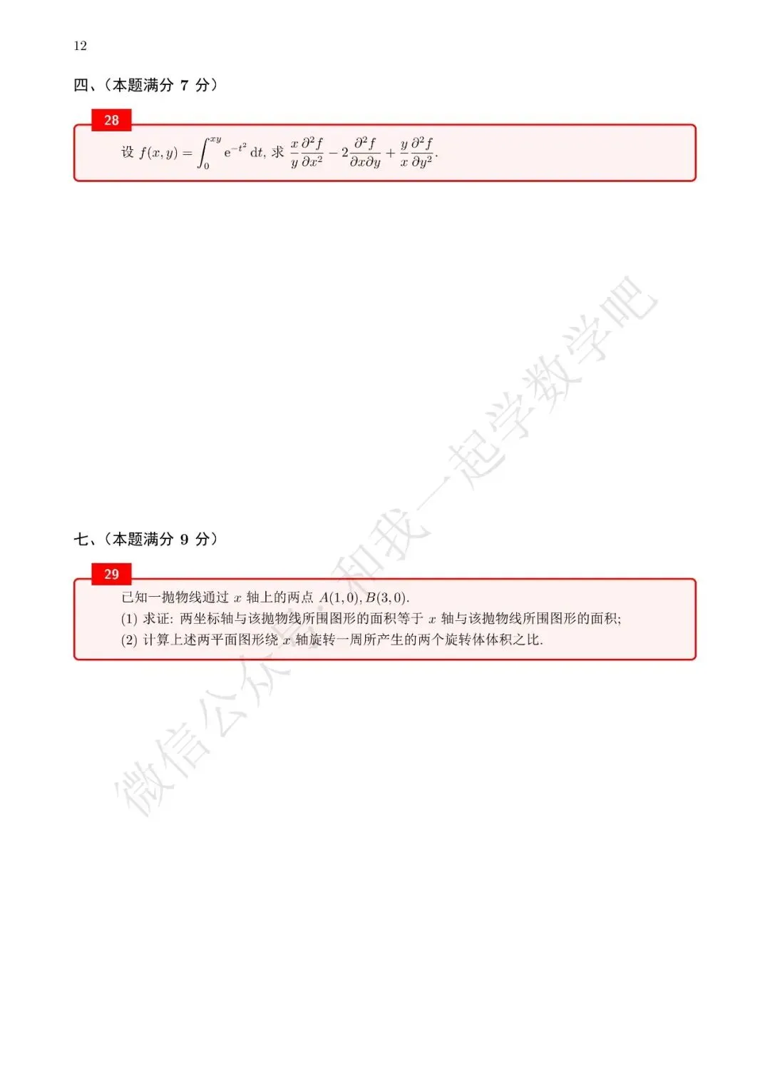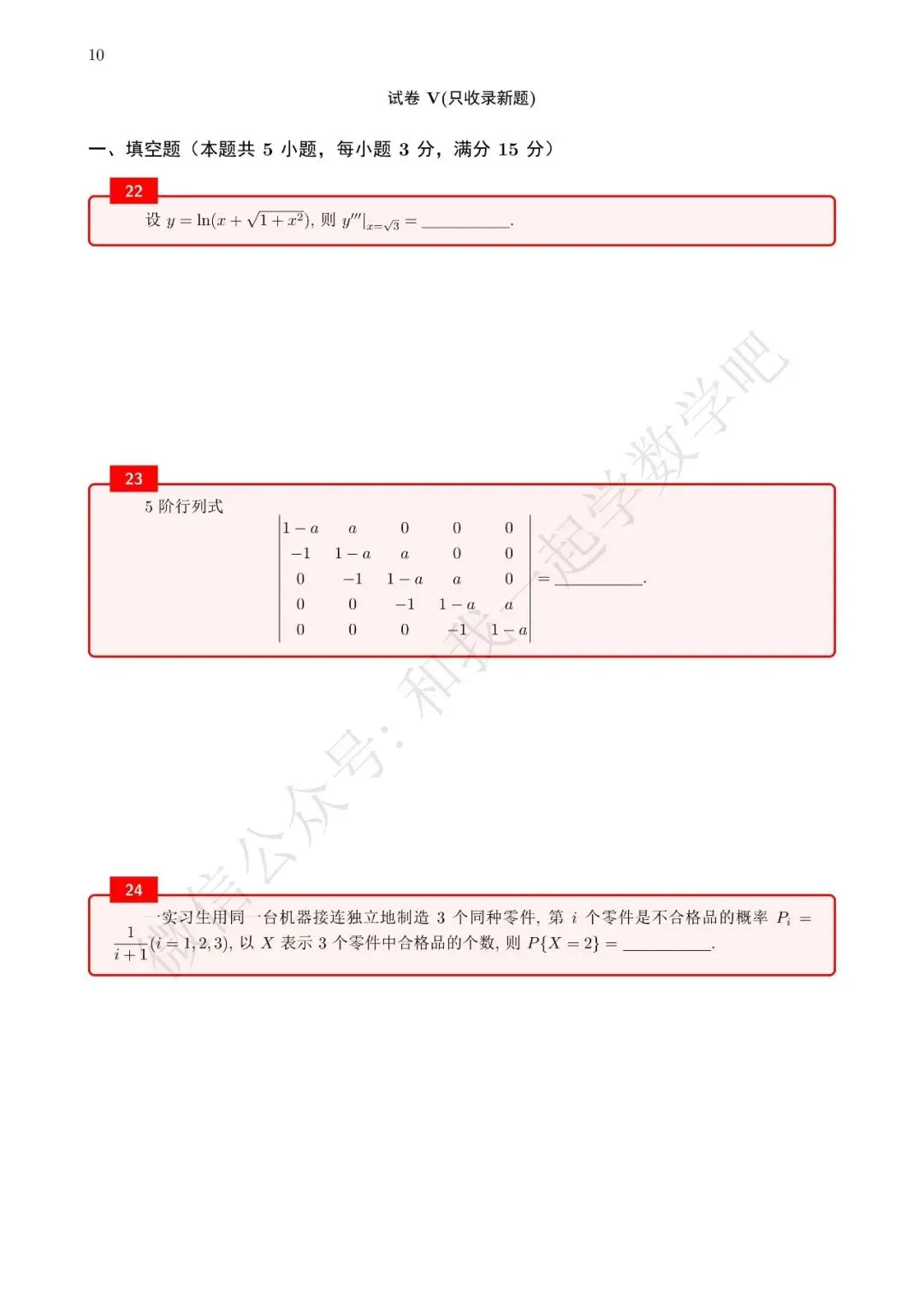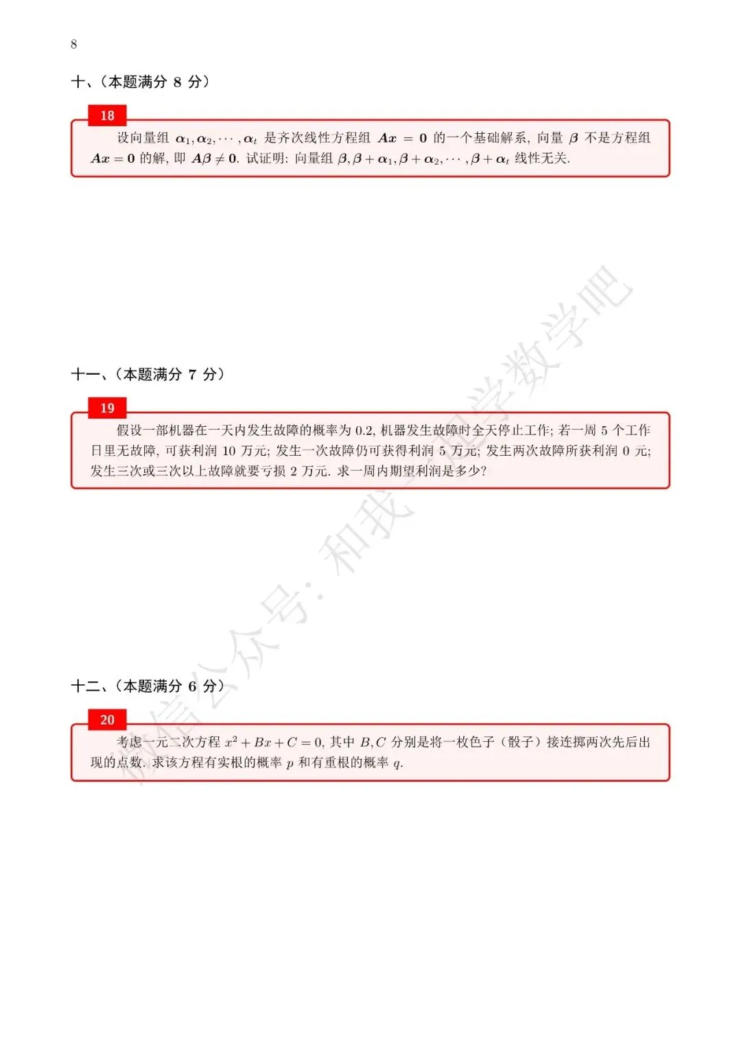 为了方便各位小伙伴们刷题,我重新排版了96年数三的真题,在每道题下面都增加了空白,方便大家写答案,记录相关知识点。
