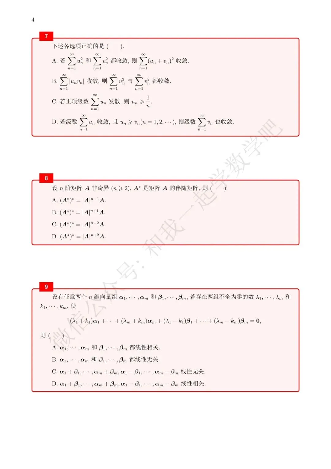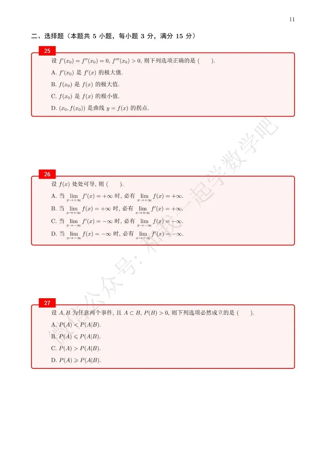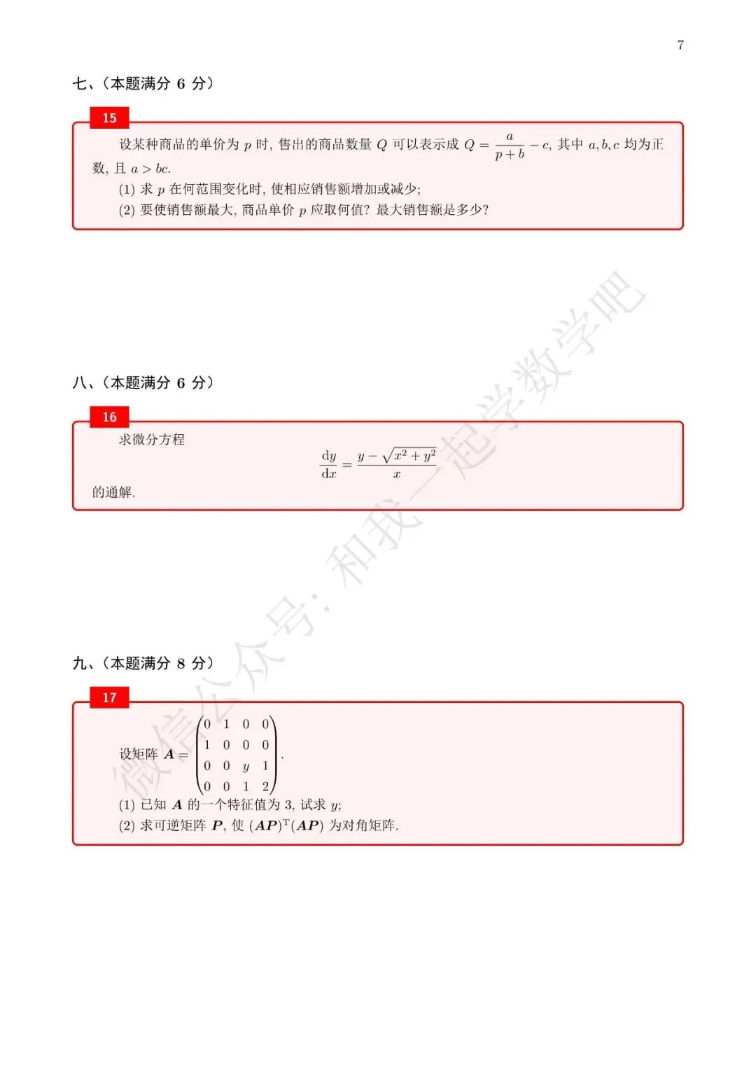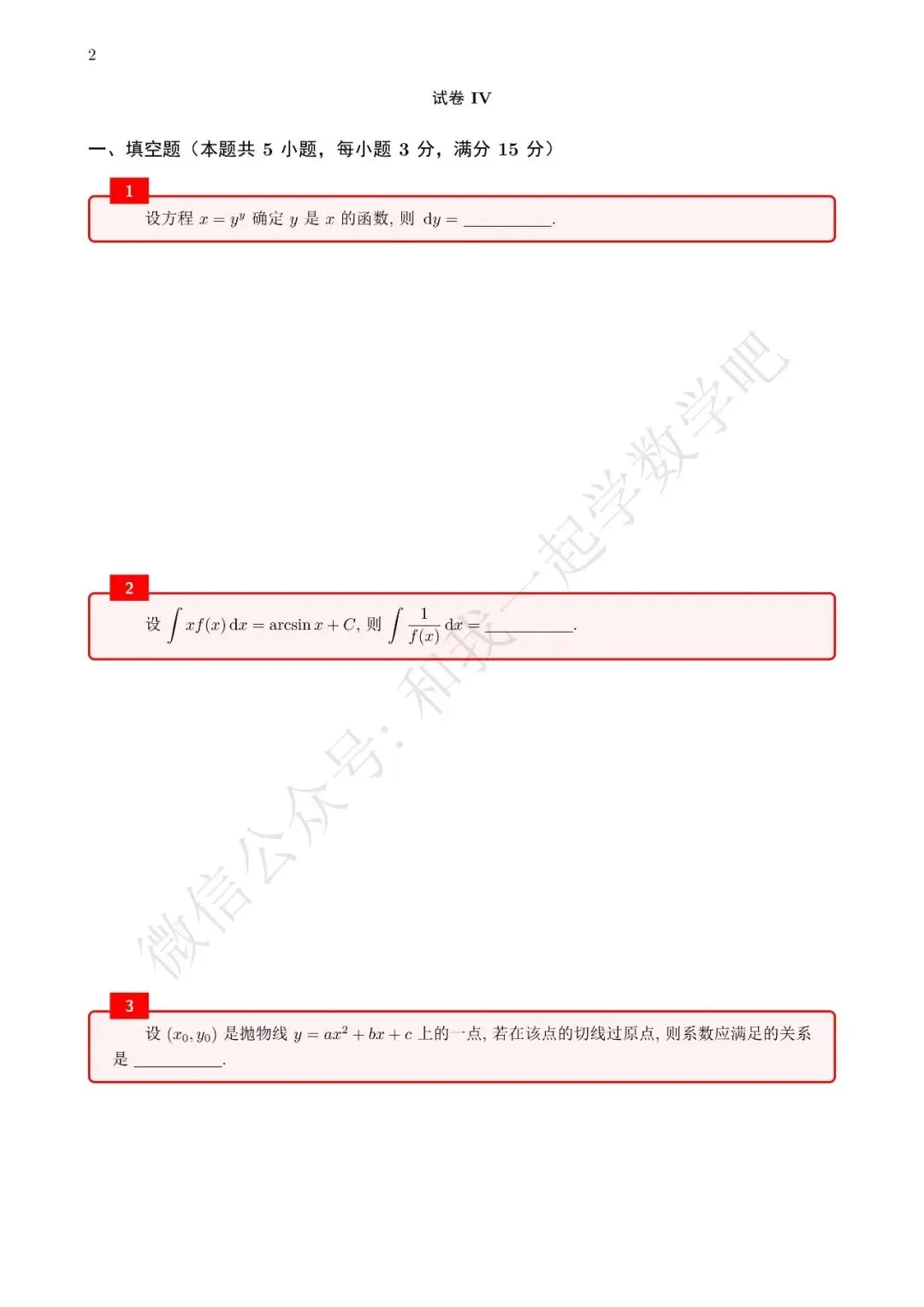 为了方便各位小伙伴们刷题,我重新排版了96年数三的真题,在每道题下面都增加了空白,方便大家写答案,记录相关知识点。
