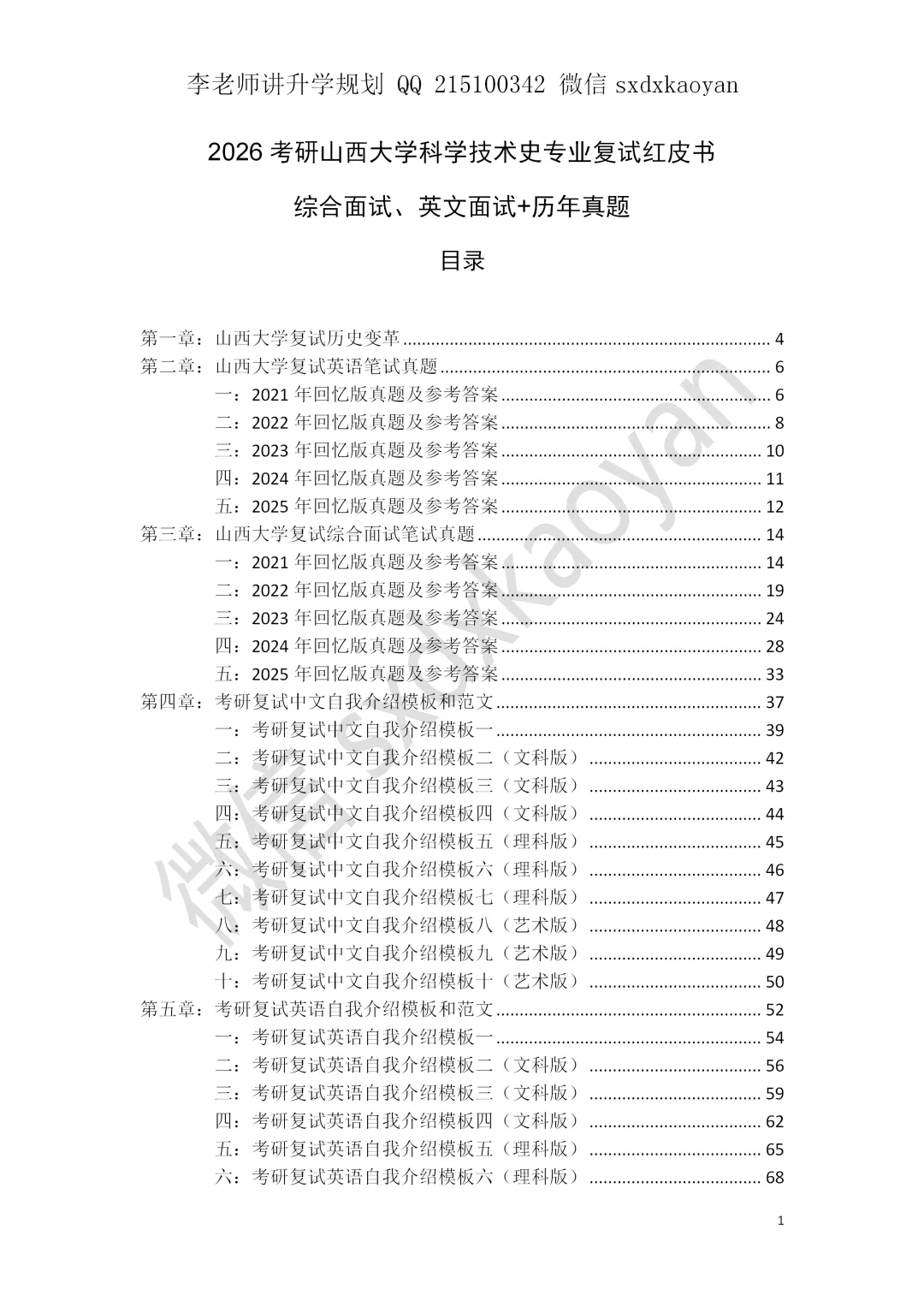 第二本:复试综合面试+英语面试+历年真题,共计189页