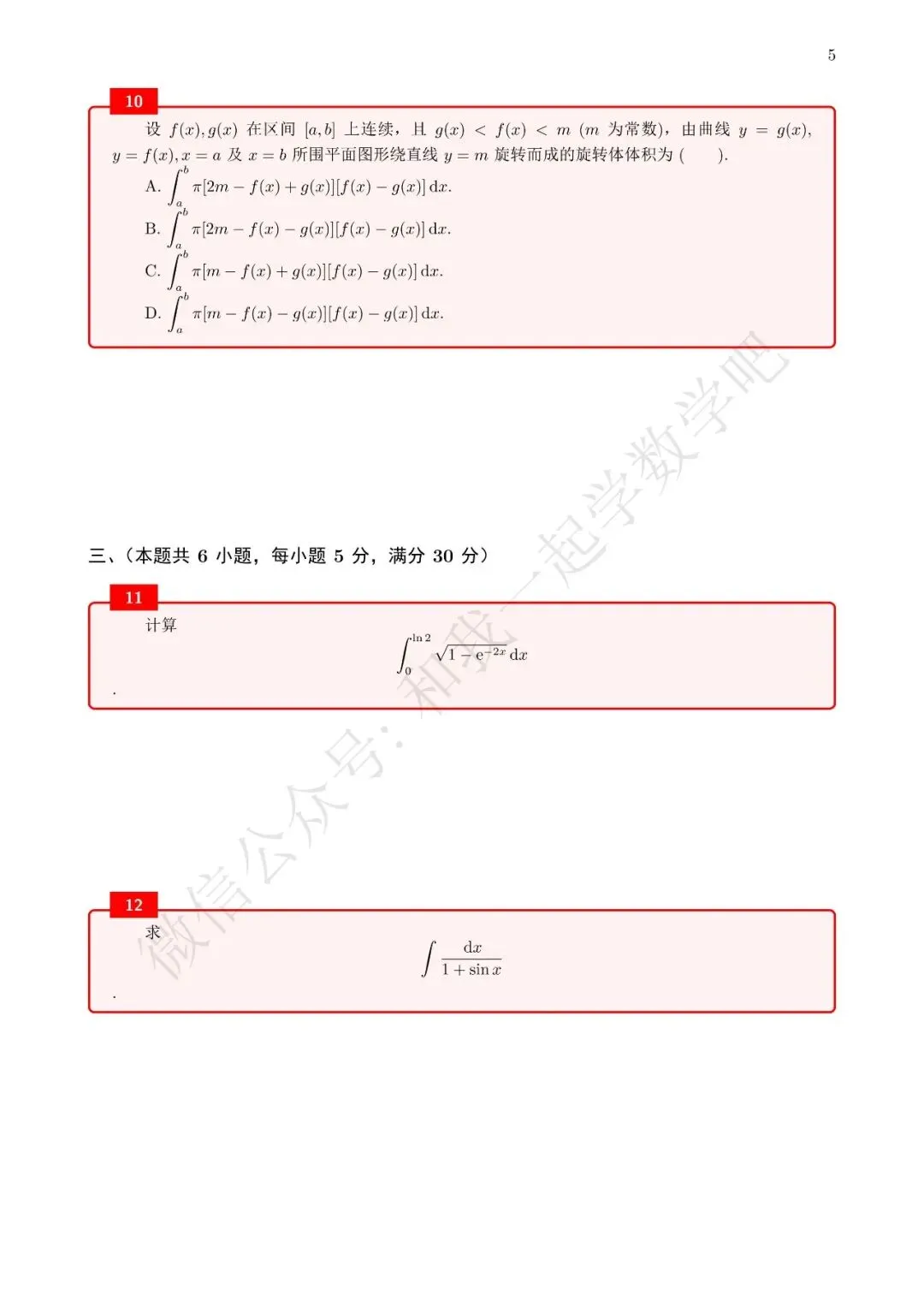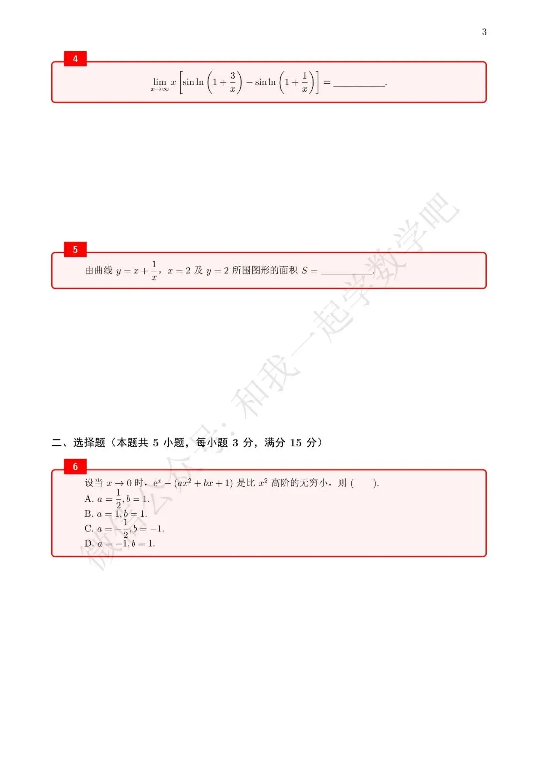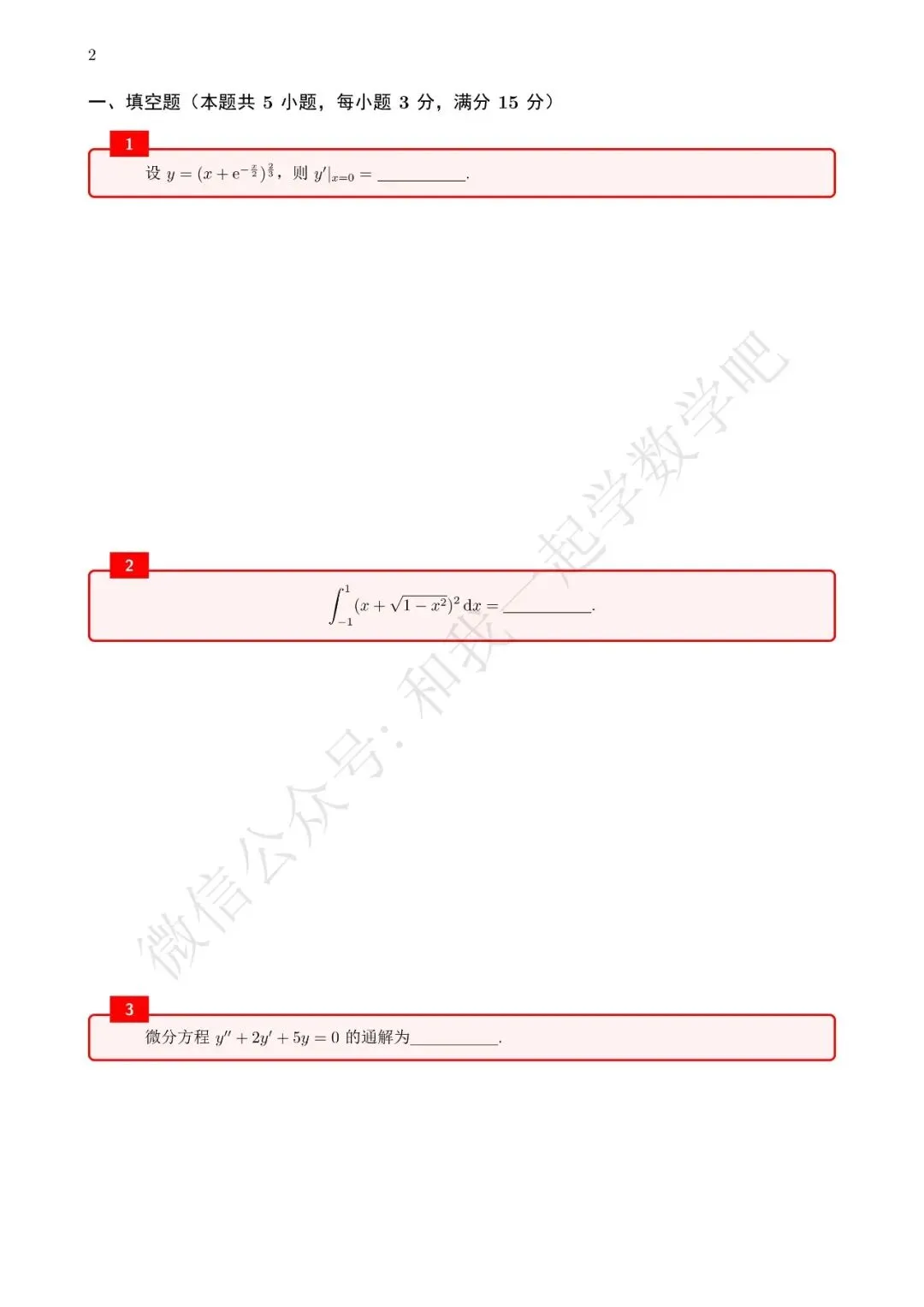 为了方便各位小伙伴们刷题,我重新排版了96年数二的真题,在每道题下面都增加了空白,方便大家写答案,记录相关知识点。