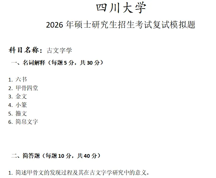 2026考研复试真题笔记资料大学期末试题更新啦2