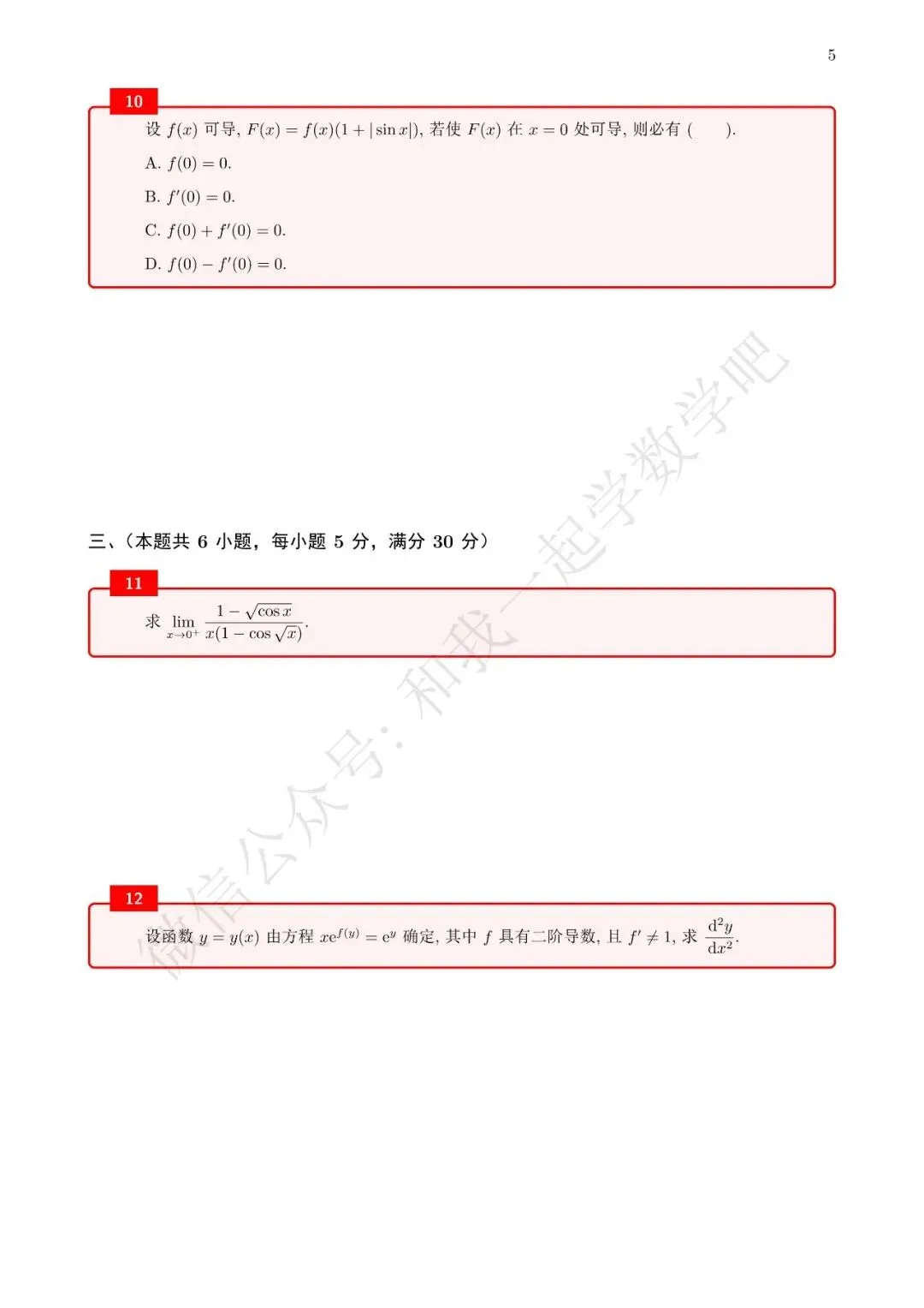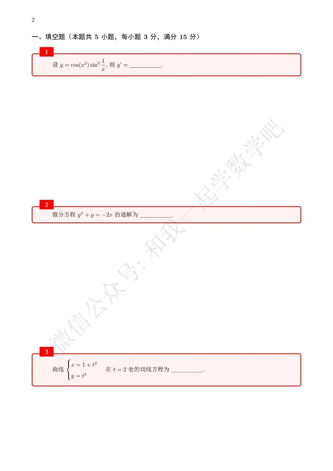 为了方便各位小伙伴们刷题,我重新排版了95年数二的真题,在每道题下面都增加了空白,方便大家写答案,记录相关知识点。