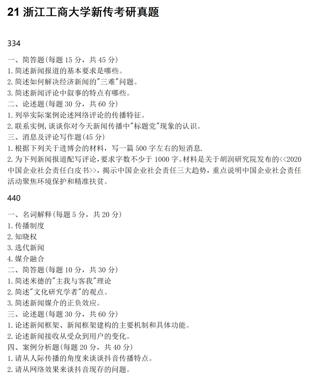 浙江工商大学新闻与传播考研真题2021