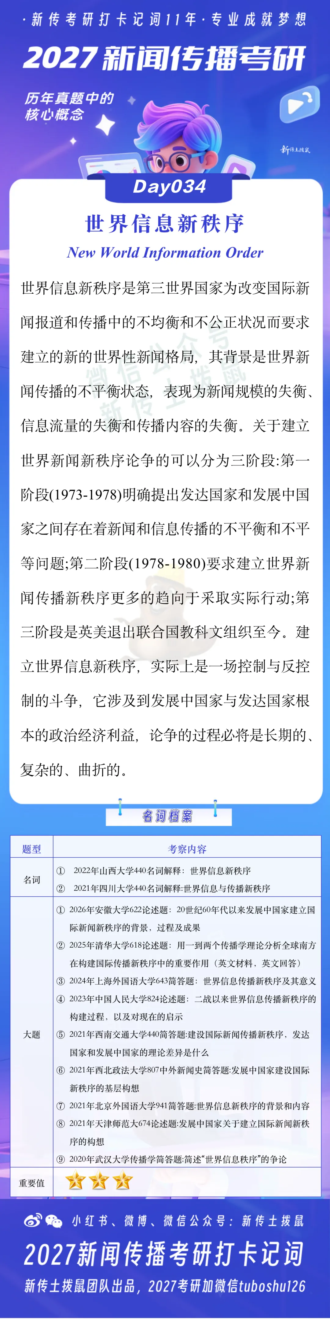 世界信息新秩序 | 2027新闻传播考研真题打卡记词Day034