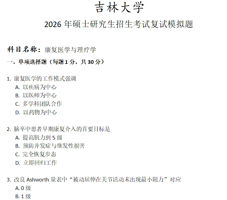 吉林大学康复医学与理疗学考研复试真题模拟含答案