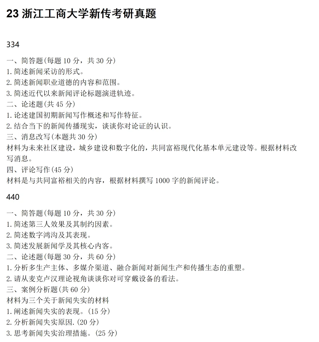 浙江工商大学新闻与传播考研真题2023