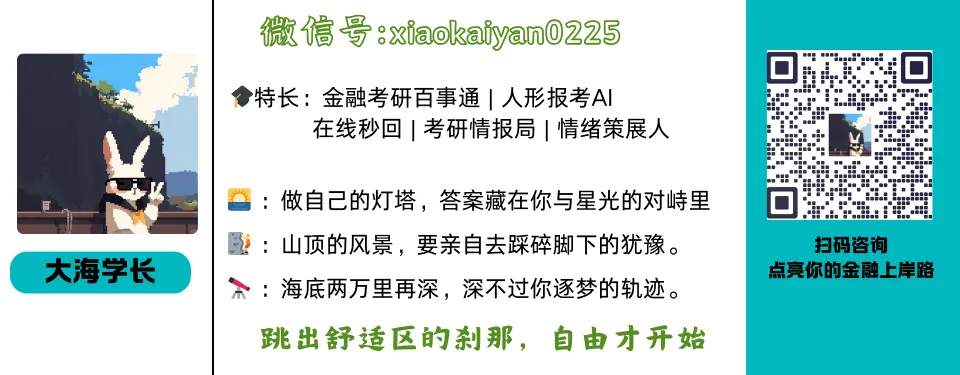 需要一对一择校指导的宝子或想要笑开研27金融专硕择校手册可添加大海学长xiaokaiyan0225或锦鲤学姐Jys0032