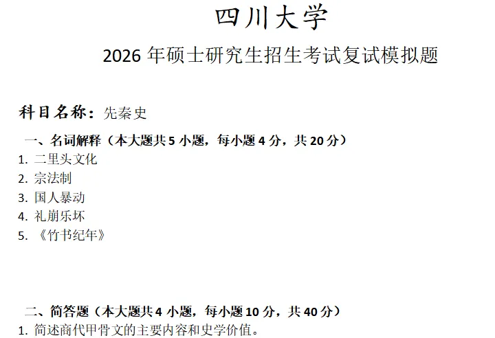四川大学先秦史考研复试真题模拟
