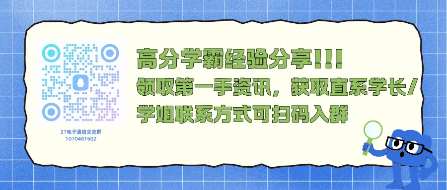 通信考研的竞争越来越激烈,但选对方向、找对方法,就能少走很多弯路。希望这份清单能帮你明确备考目标,需要直系学长学姐的帮助,可添加27电子通信考研交流群:1070461502。
