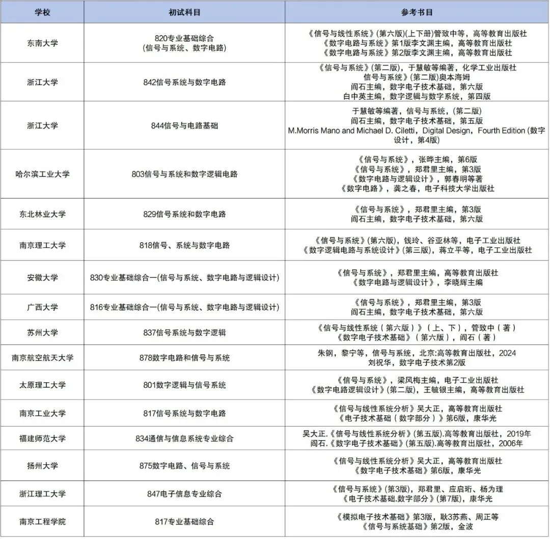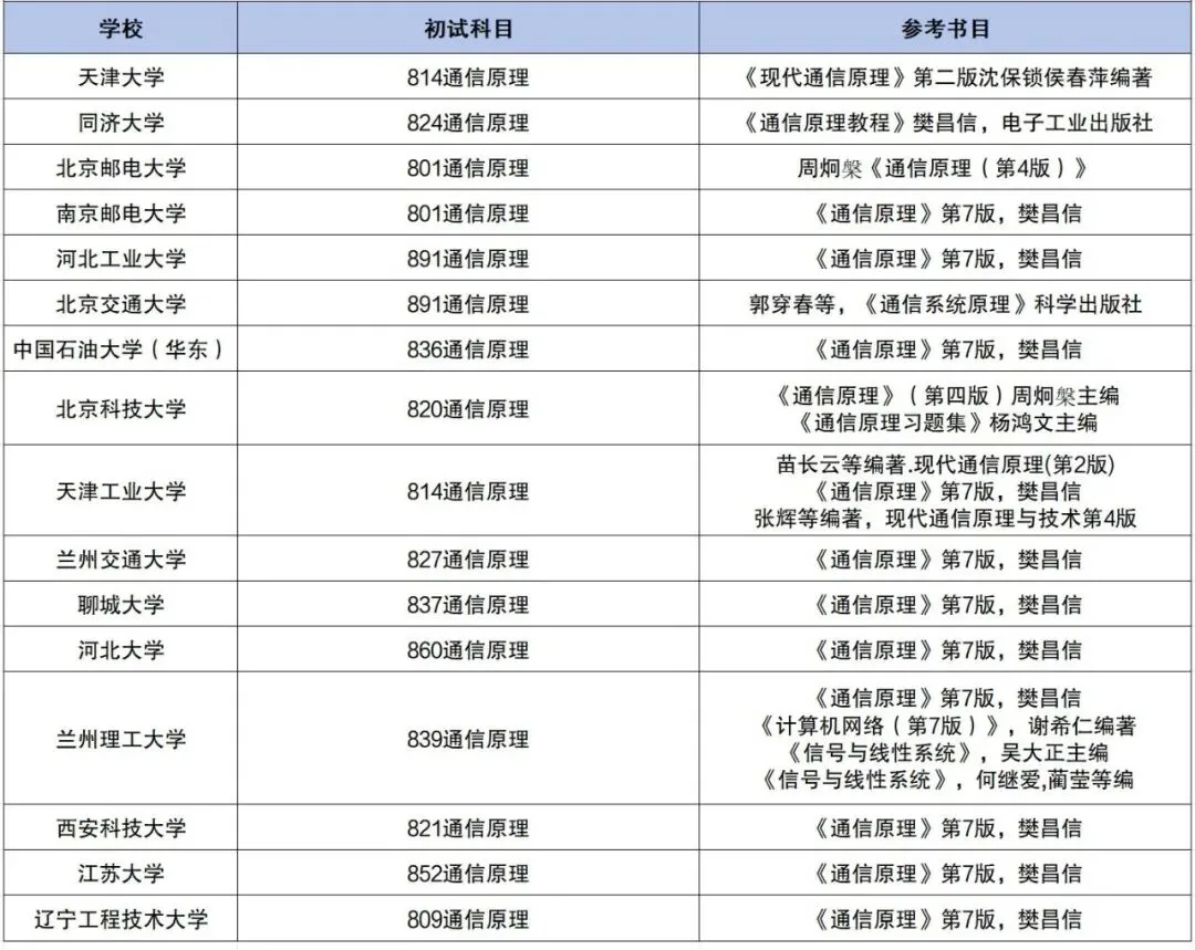 别担心!学姐今天给大家整理了一份「通信考研精简备考清单」:涵盖32所院校,其中16所仅考通信原理,16所聚焦信号系统+数字电路等核心科目。不用再纠结多门专业课的平衡,帮你精准锁定复习范围,提高备考效率!
