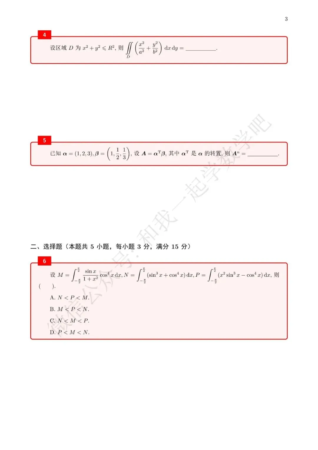 为了方便各位小伙伴们刷题,我重新排版了94年数一的真题,在每道题下面都增加了空白,方便大家写答案,记录相关知识点。