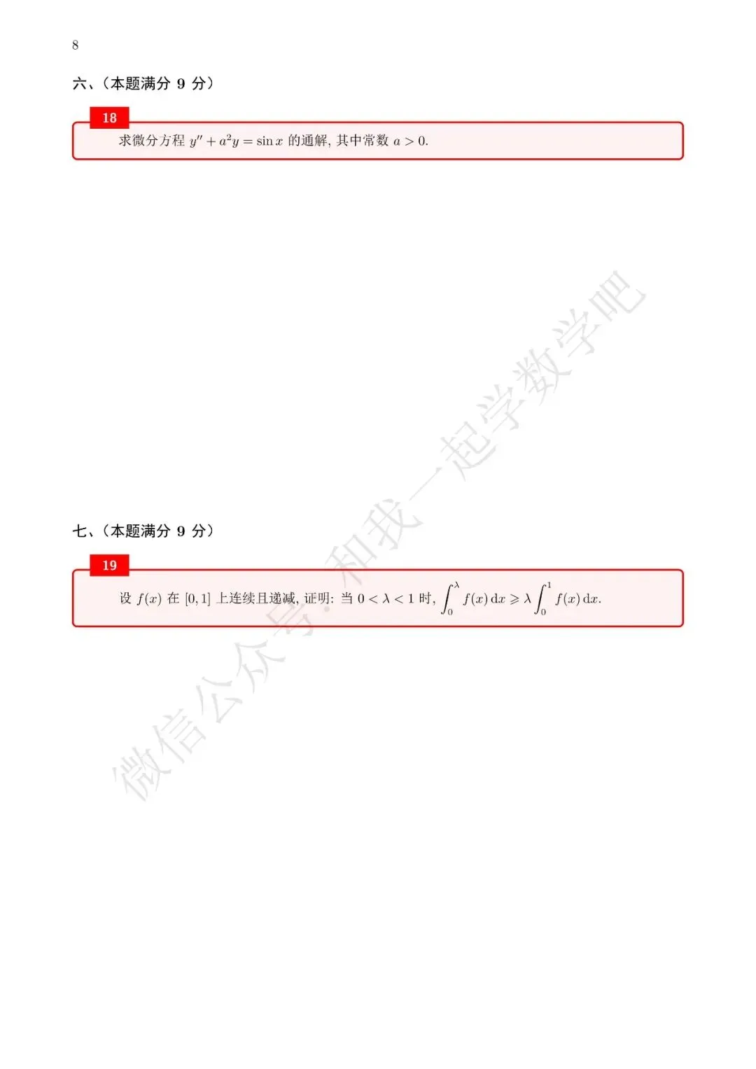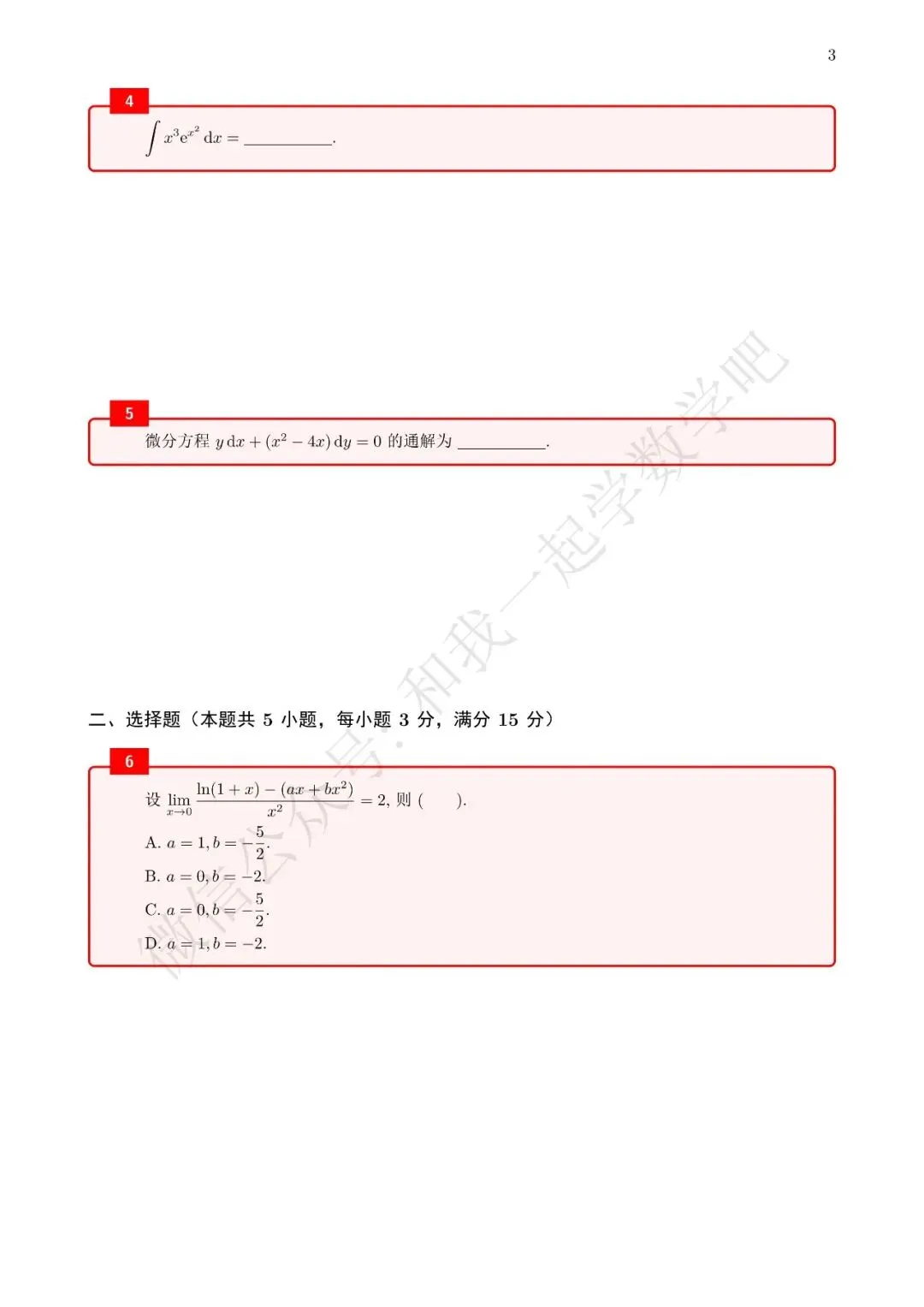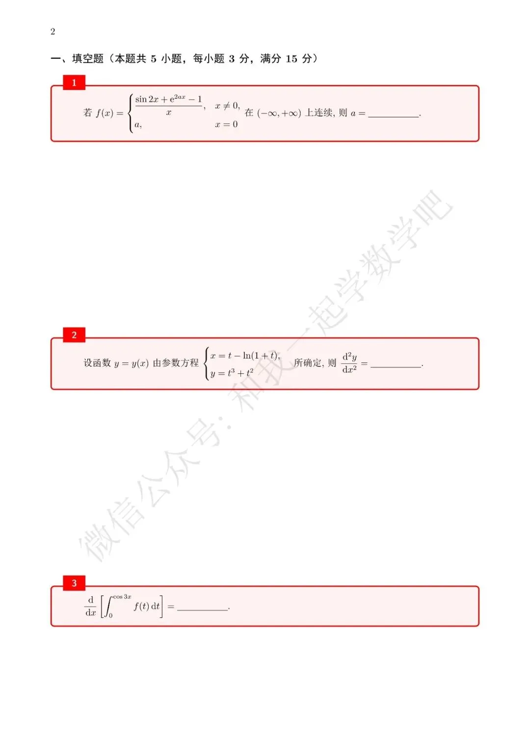 为了方便各位小伙伴们刷题,我重新排版了94年数二的真题,在每道题下面都增加了空白,方便大家写答案,记录相关知识点。