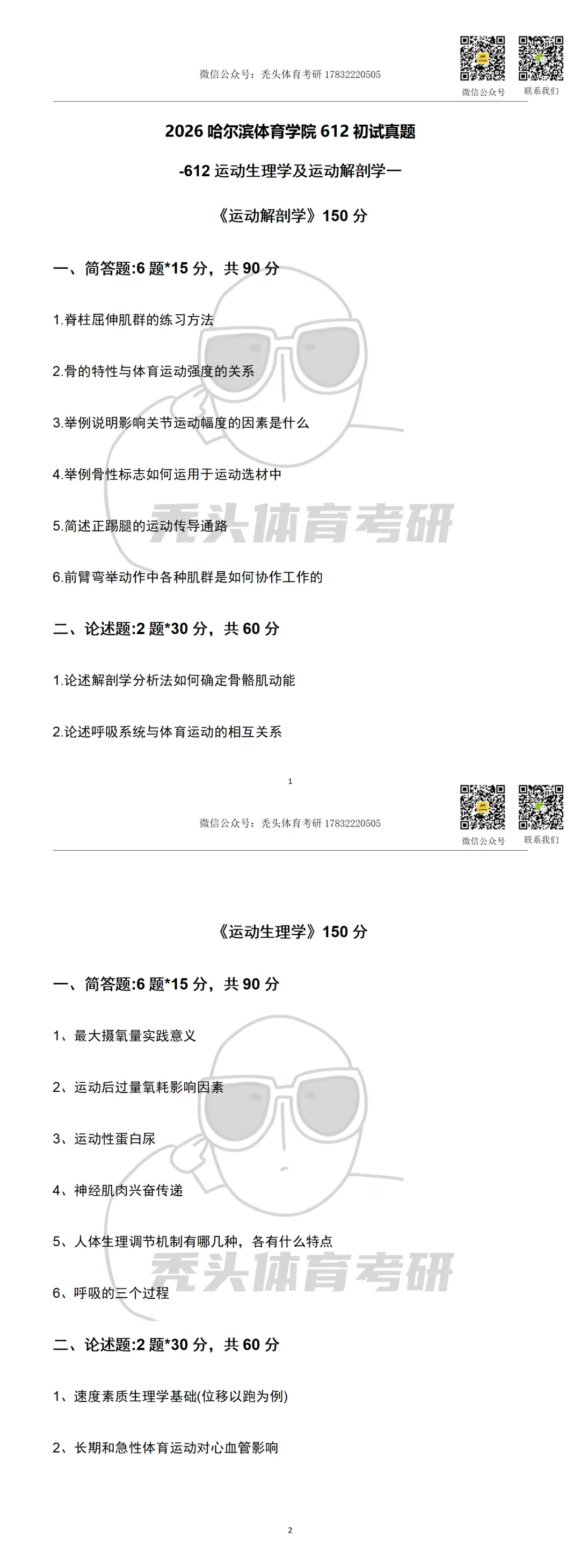 体育考研真题丨哈尔滨体育学院612初试真题(2026)