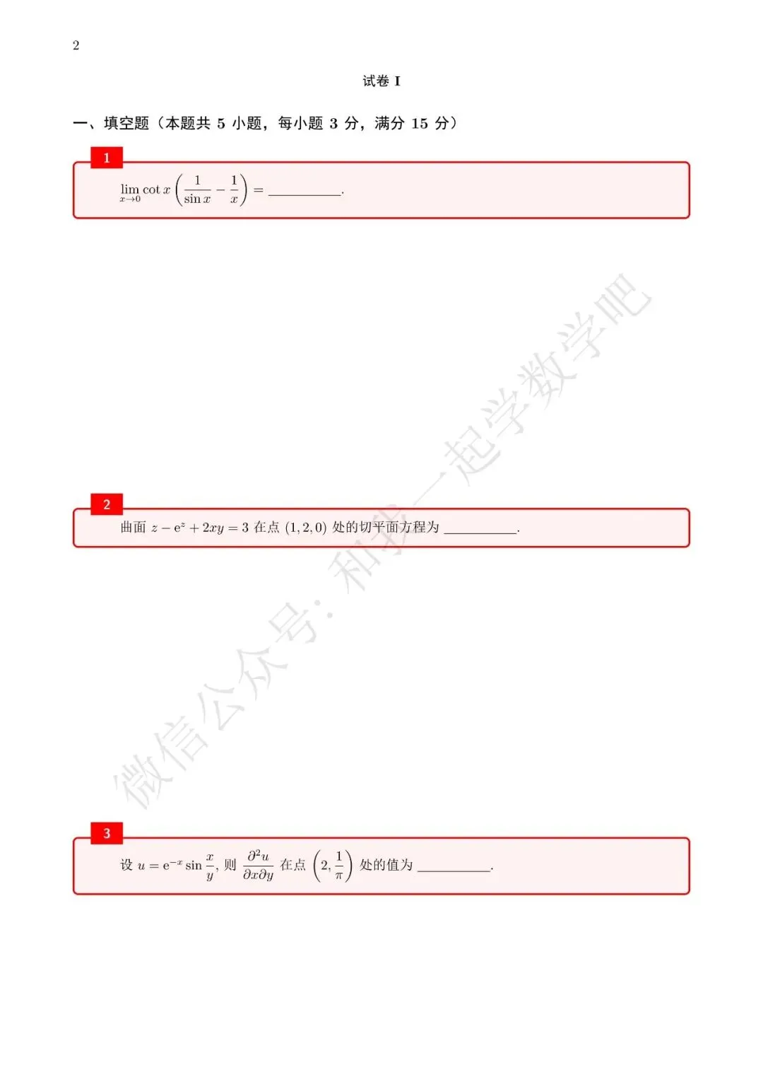 为了方便各位小伙伴们刷题,我重新排版了94年数一的真题,在每道题下面都增加了空白,方便大家写答案,记录相关知识点。
