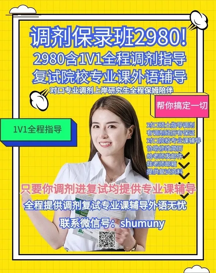 定向调剂保录班:费用待定咨询微信号:shumuny