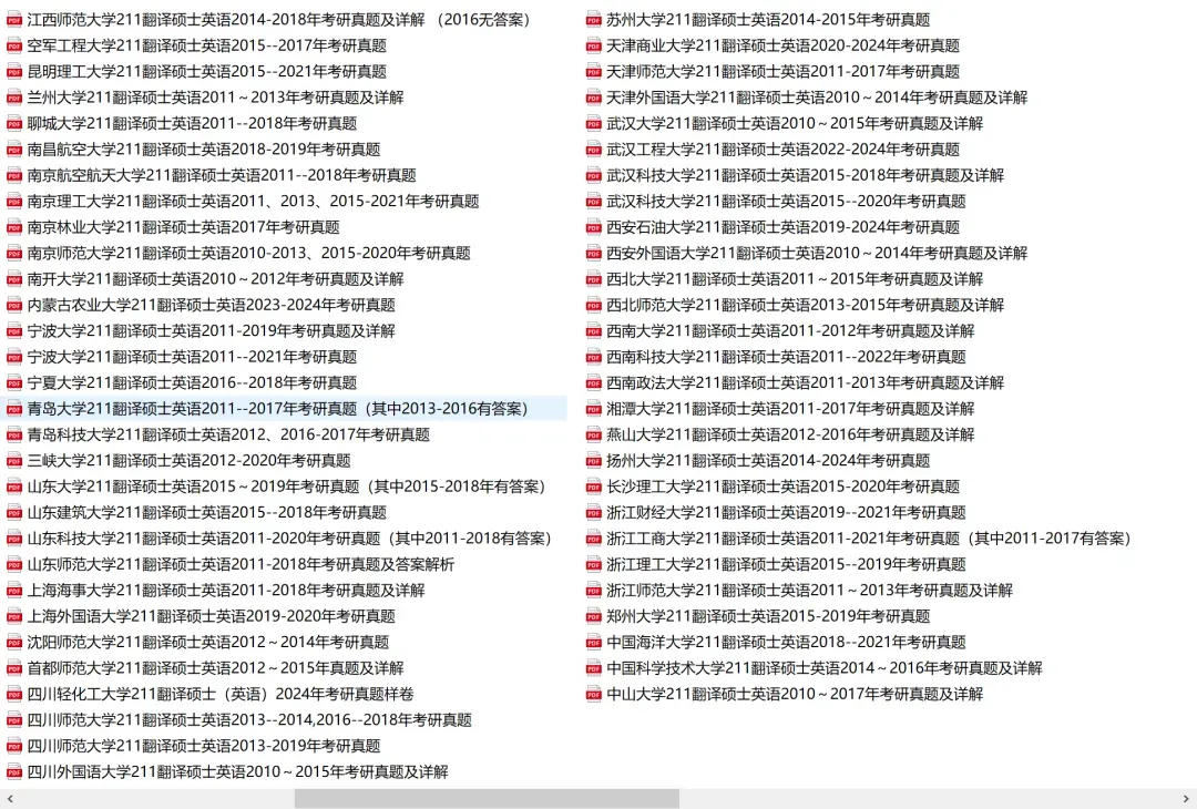 青岛大学211翻译硕士英语2011--2017年考研真题(其中2013-2016有答案)
