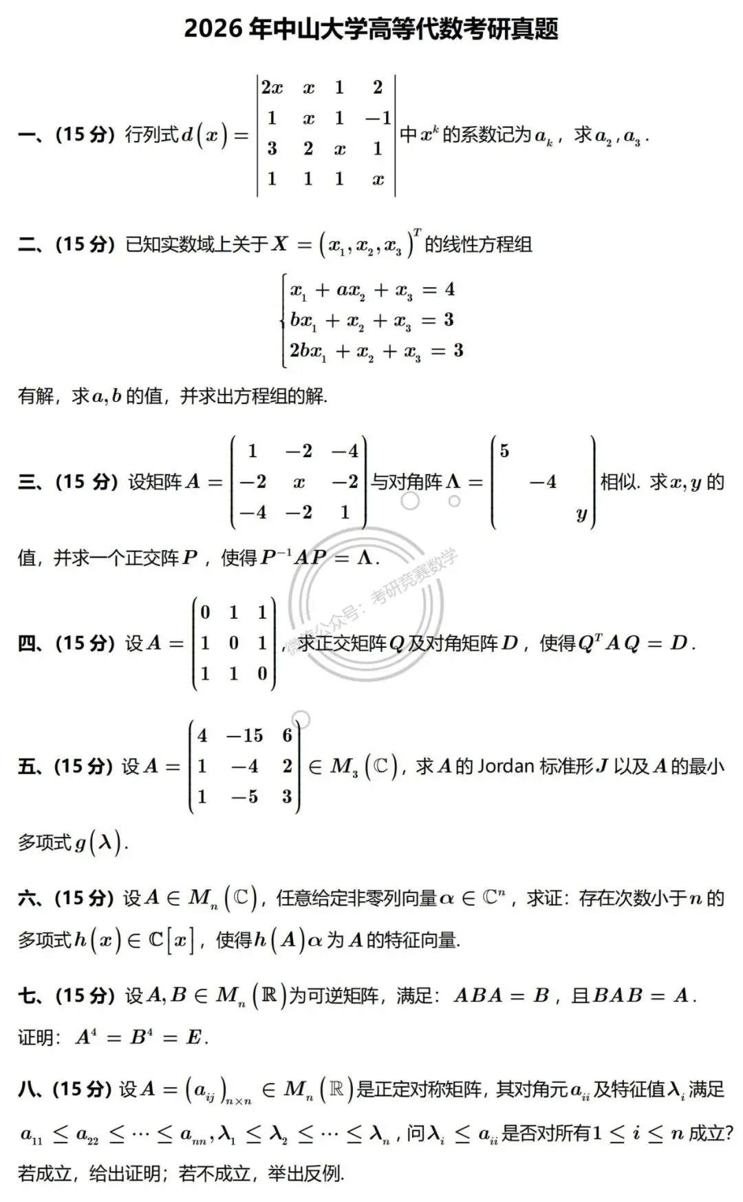 微信公众号:考研竞赛数学(ID: xwmath)大学数学公共基础课程分享交流平台!支持咱号请点赞分享!