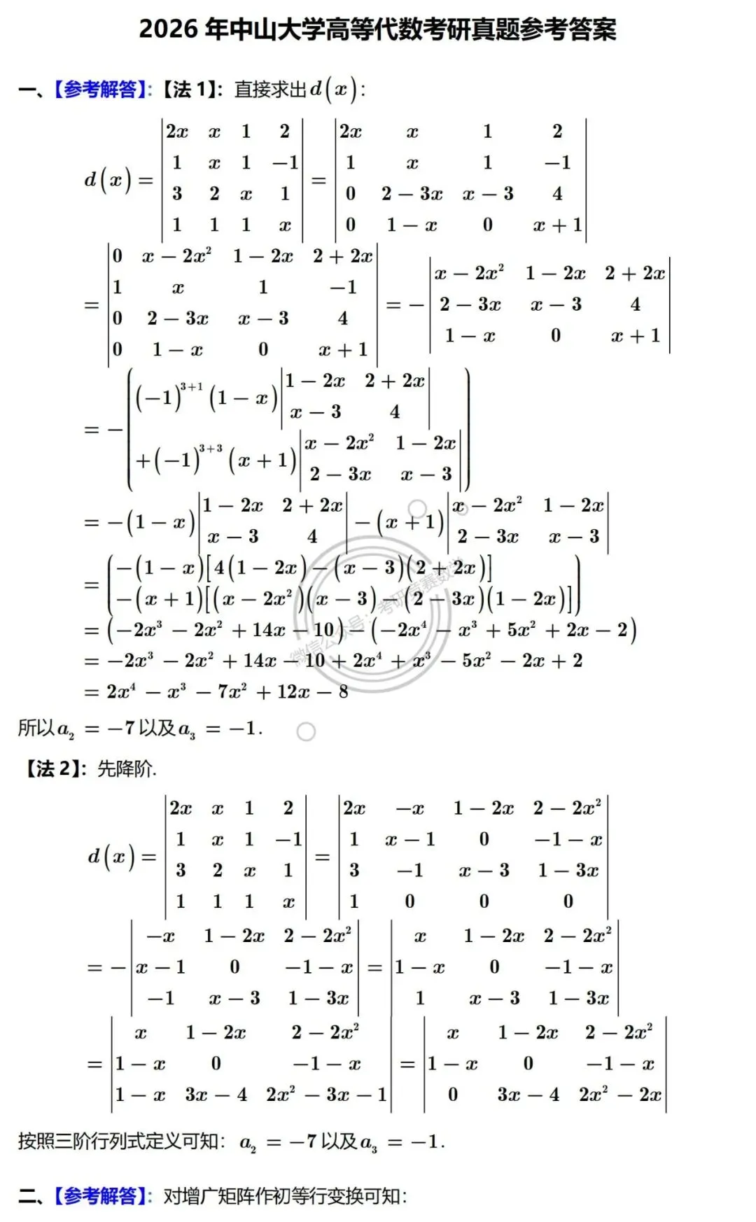 【说明】:以下解答为学友整理分享,咱号没有二次检验验证,思路与解答过程仅供参考,不能完全保证正确与严谨,如果发现问题希望学友们能够在文后直接留言交流,感谢阅读!