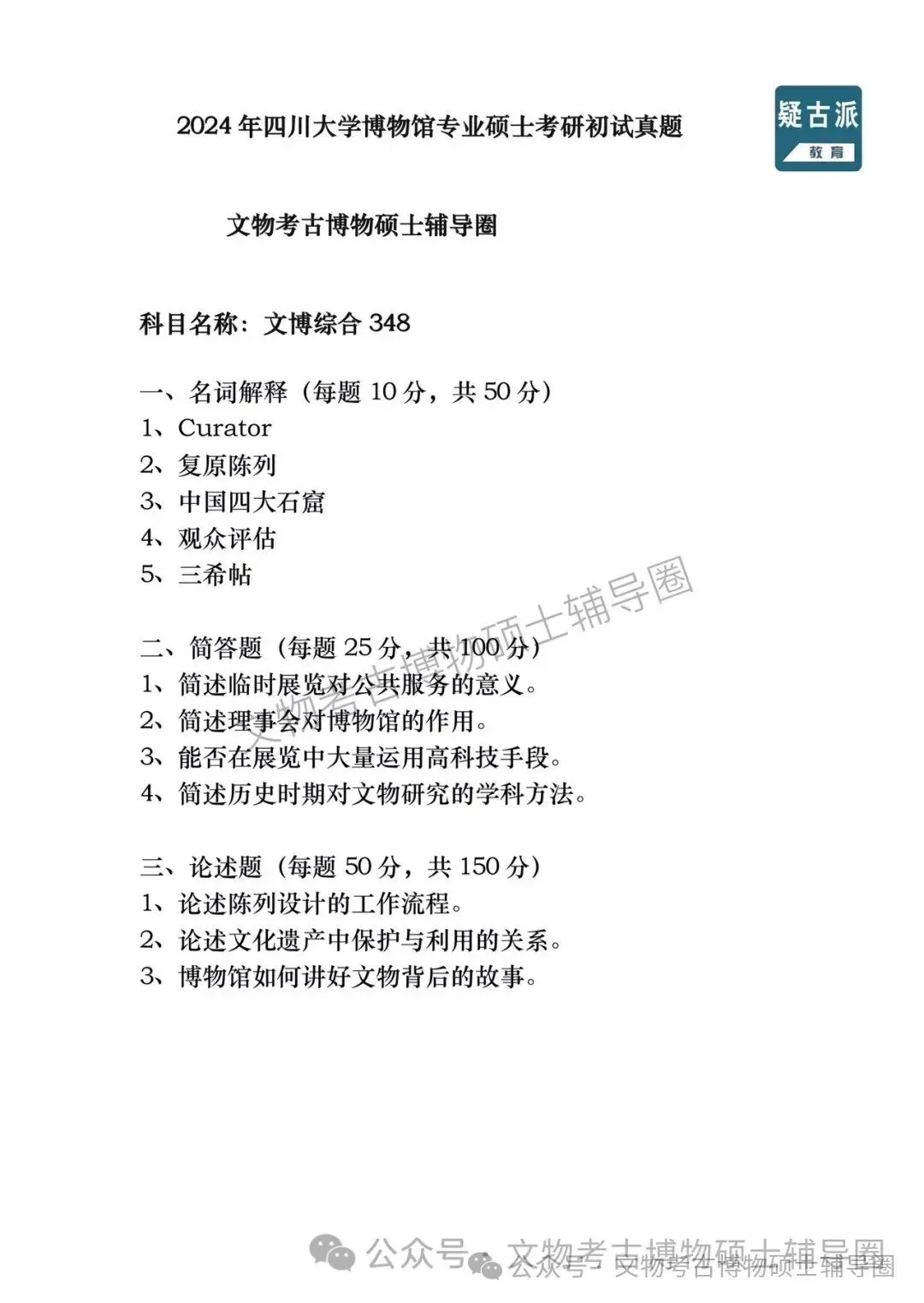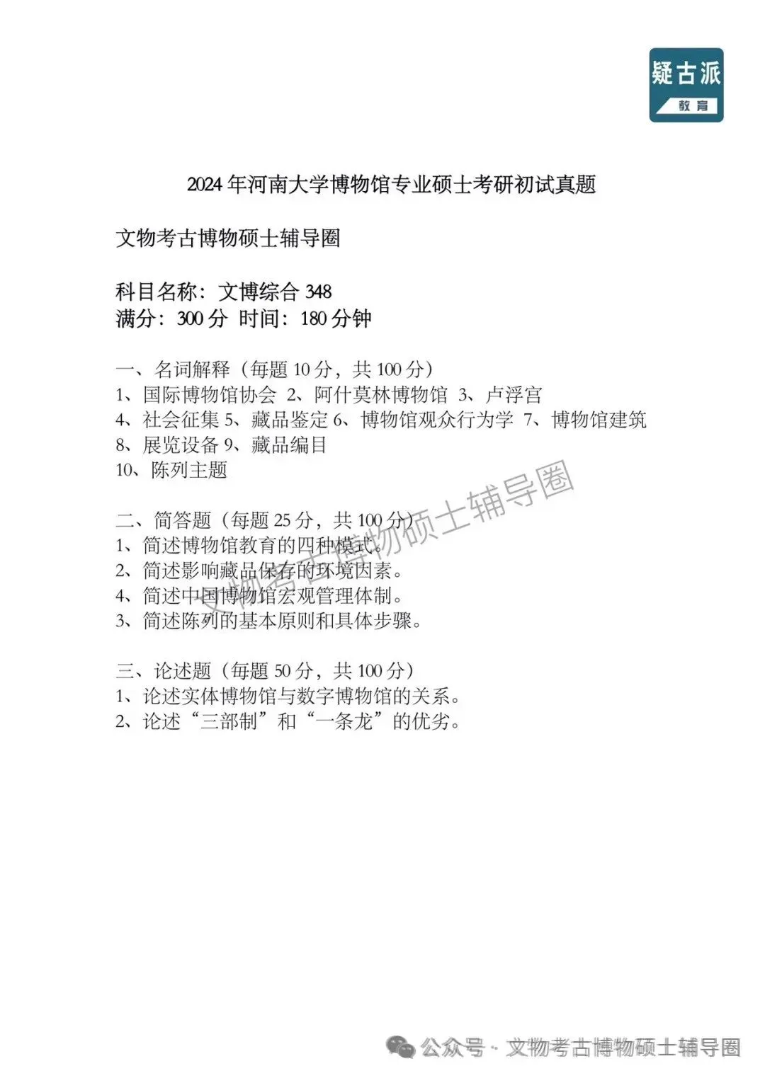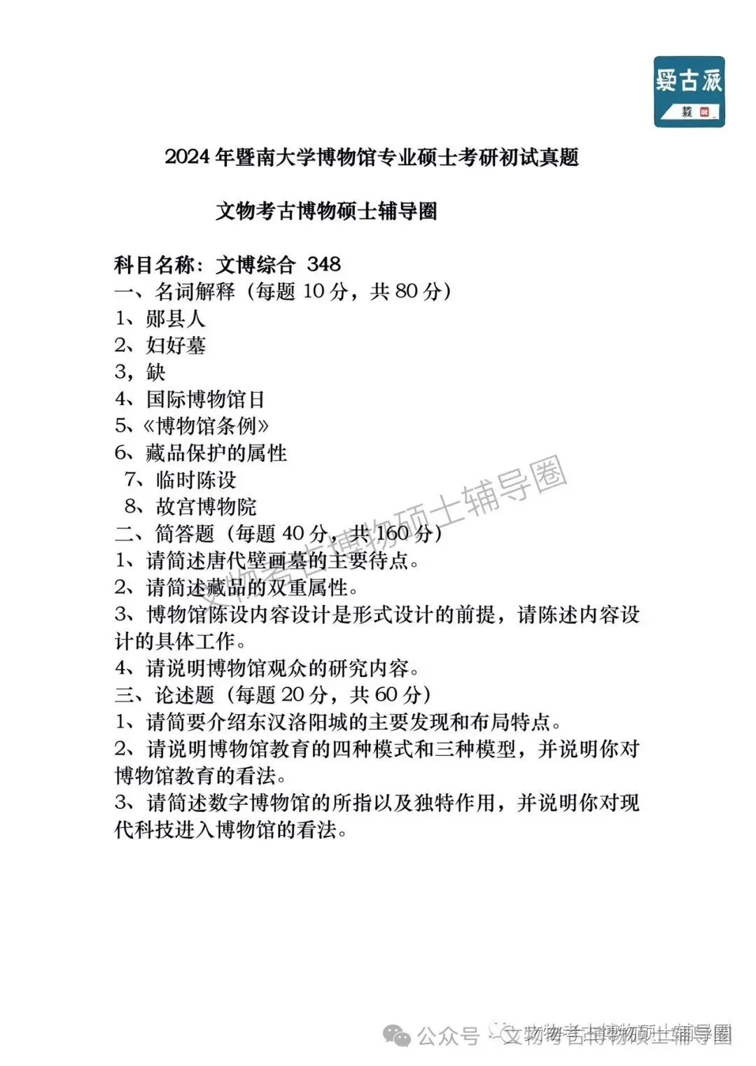 2024年全国各大高校博物馆考研初试真题汇总
